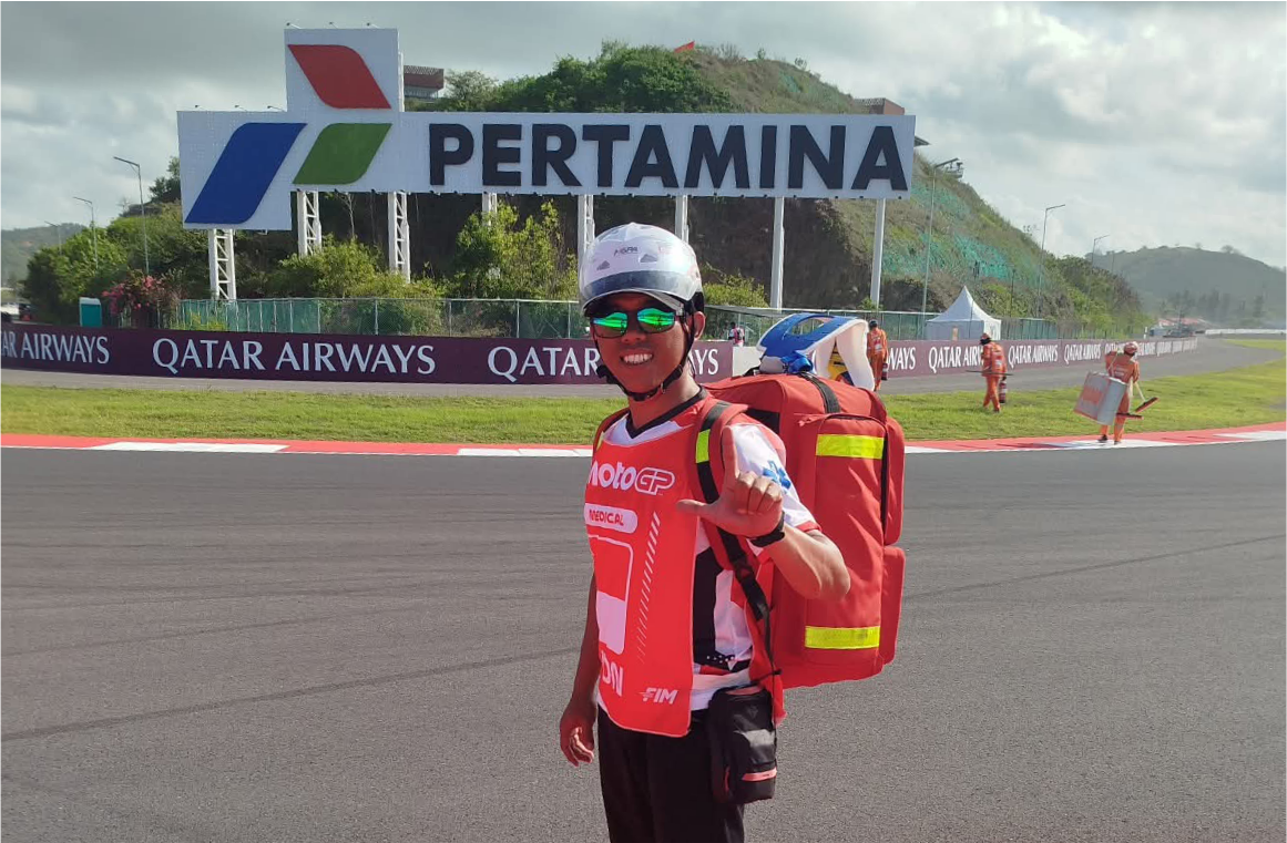 Sebagai salah satu support untuk menyukseskan event bergensi tersebut, adalah hadirnya Tim Medis yang dipersiapkan untuk selalu ready mengangani kondisi emengency para pembalap yang berlaga dan juga pengunjung. Salam satu Tim Medis tersebut adalah Iwan Purwanto, S.Kep., Ns., yang sehari-hai bertugas di RSUD Awet Muda Narmada dan merupakan alumni Prodi Keperawatan dan Profesi Ners Universitas Jenderal Achmad Yani Yogyakarta (Unjaya) tahun 2013.