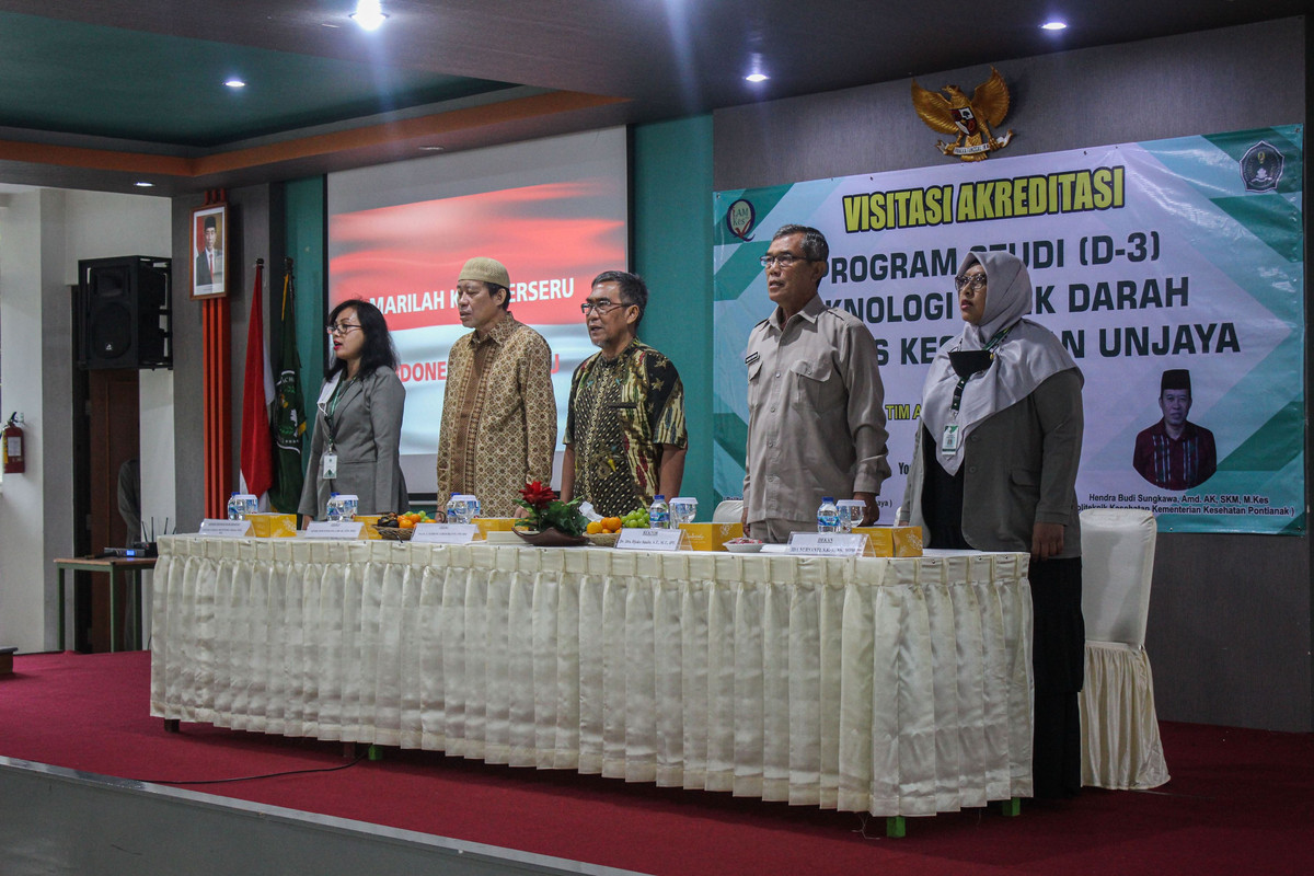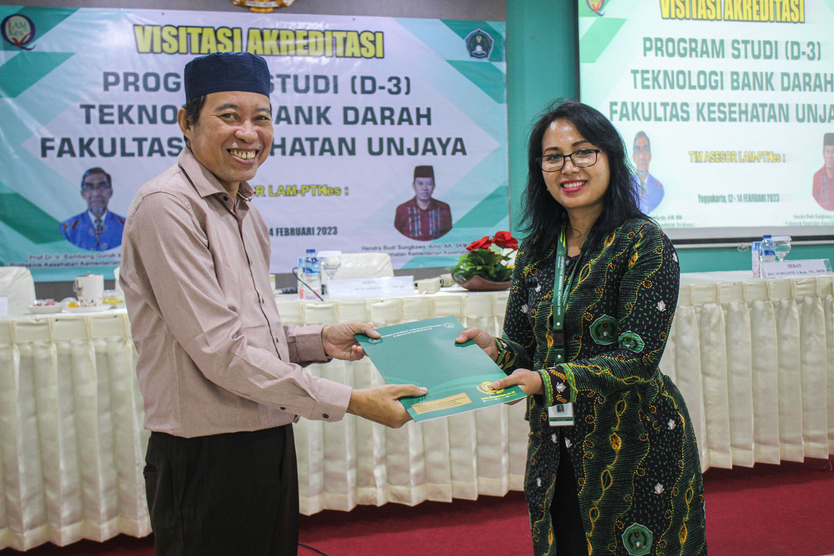 Tim LAM-PTKes terdiri dari Bapak Prof. Dr. Ir. Bambang Guruh Irianto, AIM, MM., dan Bapak Hendra Budi Sungkawa, Amd.AK., M.Kes., disambut langsung oleh Rektor Unjaya, Dr. Drs. Djoko Susilo, S.T., M.T., IPU., didampingi oleh Dekan Fakultas Kesehatan Unjaya, Ida Nursanti, S.Kep., Ns., M.P.H., Ketua Lembaga Penjaminan Mutu (LPM) Unjaya, Rahayu Iskandar, S. Kep, Ners., M.Kep., dan Ketua Prodi TBD (D-3) Unjaya, Fransisca Romana Sri Supadmi., A.Md.Kes., SKM., M.Sc., beserta para pejabat struktural Rektorat dan Fakultas Kesehatan.