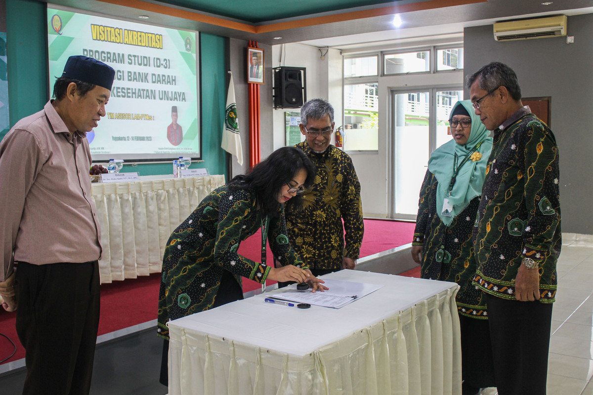 SLEMAN – Bertempat di Gedung Serba Guna (GSG) Fakultas Kesehatan Universitas Jenderal Achmad Yani Yogyakarta dilaksanakan assesmen lapangan dalam rangka reakreditasi Program Studi Teknologi Bank Darah (D-3) Fakultas Kesehatan Universitas Jenderal Achmad Yani Yogyakarta atau Prodi TBD (D-3) Unjaya oleh Tim Lembaga Akreditasi Mandiri Pendidikan Tinggi Kesehatan Indonesia (LAM-PTKes) pada Minggu-Selasa, (12-14/02/2023).