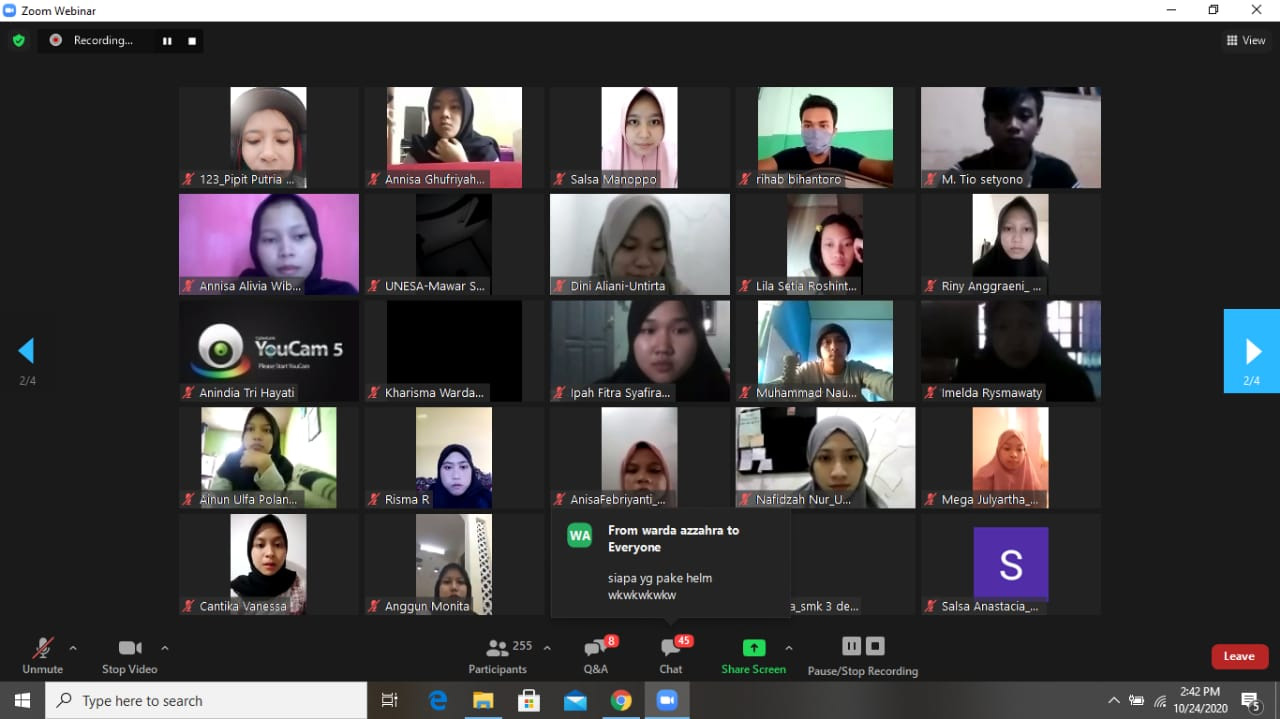 SLEMAN – Sebagai salah satu organisasi intra perguruan tinggi, Badan Eksekutif Mahasiswa Fakultas Ekonomi dan Sosial Universitas Jenderal Achmad Yani Yogyakarta melaksanakan Talkshow dengan tema “To Share To Inspire” pada Sabtu, (24/10/2020) secara daring menggunakan media zoom. Topik ini dipilih untuk memberikan informasi dan motivasi bagi teman-teman yang akan melanjutkan pendidikan strata dua (S2) luar negeri menggunakan beasiswa. Tidak ada mimpi yang terlalu tinggi, maka dari itu kami berharap acara ini akan menjadi event tahunan yang dilaksanakan. Mengingat topik ini sanggat relateable dengan kehidupan mahasiswa. Talk Show Beasiswa dengan tema “To Share To Inspire” yang dimoderatori oleh Mada Regina, mahasiswa S1 Akuntasi. Acara dibuka dengan sambutan Dekan Fakultas Ekonomi dan Sosial Bp Edy Tri Cahyono S.si., MM dan dihadiri kurang lebih sebanyak 258 peserta. Acara ini menghadirkan pembicara: Nur Haris Ali, S.Psi., M.Sc (Psych) yang merupakan penerima beasiswa konsorsium Program Erasmus, dimana beliau mengenyam pendidikan di dua universitas Spanyol dan Portugal. Talk Show ini membahas tentang cara mencari beasiswa, cara mendapat beasiswa, memilih beasiswa yang sesuai serta berbagi pengalaman mengenai beasiswa. Perserta yang mengikuti acara ini tidak hanya berasal dari Universitas Jenderal Achmad Yani Yogyakarta, tetapi juga dari beberapa kampus lainnya bahkan terdapat peserta dari Sekolah Menengah Atas. Para peserta memberikan respon yang sangat positif dan antusias dengan materi yang diberikan karena pembawaan materi yang santai dan menarik.