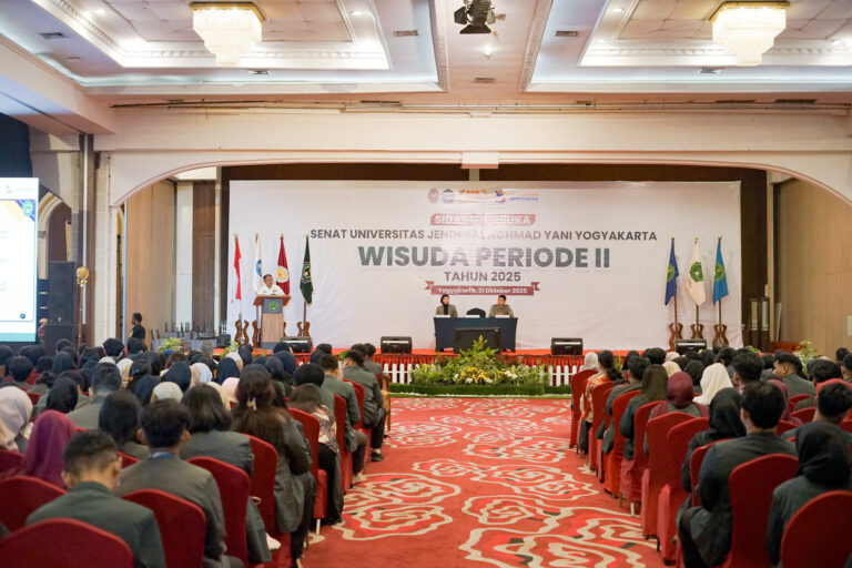 Sleman — Universitas Jenderal Achmad Yani Yogyakarta (Unjaya) menyelenggarakan Prosesi Wisuda Periode II Tahun 2025 di The Rich Jogja Hotel, Senin (20/10/2025).…