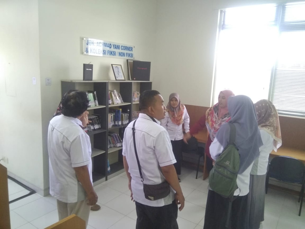 Kunjungan yang berlangsung dengan penuh persahabatan ini diawali dengan perkenalan dan Library Tour dipandu olegh Kepala Perpustakan Unjani Yogyakarta yang diawali dengan pengenalan fasilitas perpustakaan seperti anjungan presensi pengunjung, bagian layanan perpustakaan, OPAC, ruang baca, penciri Unjani Yogyakarta yang ada perpustakaan yakni “Jenderal Achmad Yani Corner” serta ruang koleksi dan karya ilmiah. Selain itu, Kepala Perpustakan Unjani Yogyakarta juga memperkenalkan ruang literasi informasi dan menjelaskan apa saja yang dilakukan saat kegiatan kelas literasi informasi. Setelah library tour, dilanjutkan dengan presentasi pengenalan Perpustakaan Unjani Yogyakarta dengan segala fasilitas yang dimiliki yang berfokus pada studi layanan automasi, institutional repository, serta literasi informasi. Kepala Perpustakaan memaparkan fitur-fitur yang ada di dalam repository serta proses literasi informasi yang berjalan di Perpustakaan Unjani Yogyakarta.
