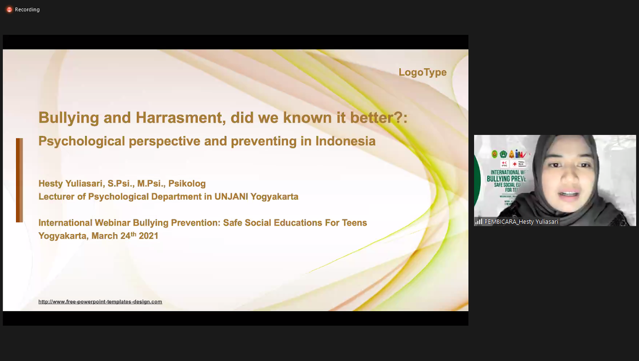 SEMAN – Bullying dalam bahasa Indonesia sering disebut penindasan dalam artian segala bentuk penindasan atau kekerasan yang dilakukan dengan sengaja oleh satu orang atau sekelompok orang yang lebih kuat dan berkuasa terhadap oranglain, dengan tujuan untuk menyakiti orang lain dan dapat dilakukan dan terjadi secara terus menerus. Prihatin makin maraknya perilaku bullying di kalangan Remaja, Universitas Jenderal Achmad Yani Yogyakarta (UNJAYA) bersinergi dengan Palang Merah Indonesia Daerah Istimewa Yogyakarta (PMI DIY) menyelenggarakan Webinar Internasional dengan tema Bullying Prevention: Safe Social Education for Teens pada Rabu, (24/03/21).