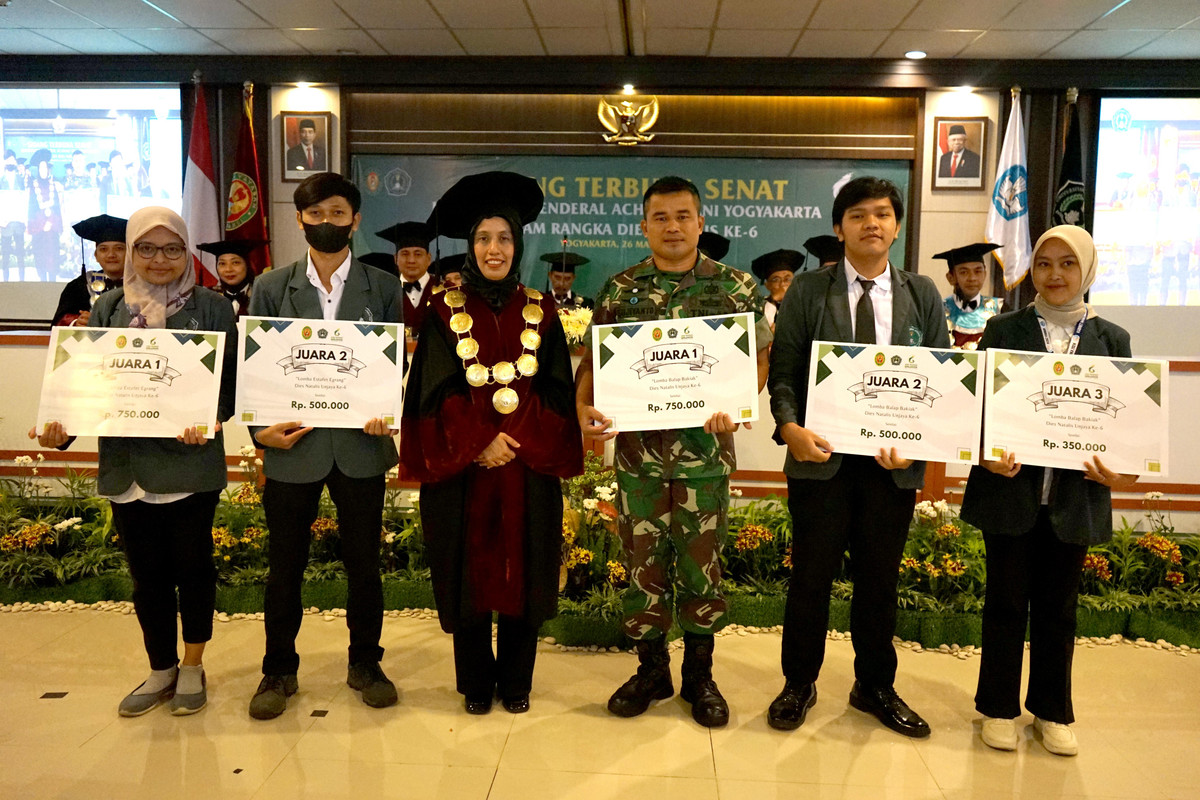 SLEMAN – Bertempat di Ruang Auditorium Lt. 4 Kampus 1 Universitas Jenderal Achmad Yani Yogyakarta (Unjaya) diselenggarakan acara Sidang Senat Universitas dalam rangka Dies Natalis ke-6 Unjaya pada Selasa, (26/03/2024). Acara dipimpin langsung oleh Ketua sekaligus Rektor Unjaya, Prof. Dr. rer.nat.apt. Triana Hertiani, S.Si., M.Si., diawali dengan laporan ketua panitia Dies Natalis ke-6 Unjaya, Andi Karisma N., A.Md.Perkes., SKM. MPH., yang menyampaikan berbagai rangkaian kegiatan Dies Natalis ke-6 Unjaya yang telah di mulai sejak bulan Februari s.d. April 2024 dengan mengambil tema ”Dengan Semangat Heroisme, Bergerak dan Bertumbuh menuju Unjaya yang Unggul dan Terdepan”.