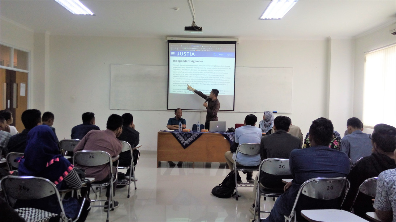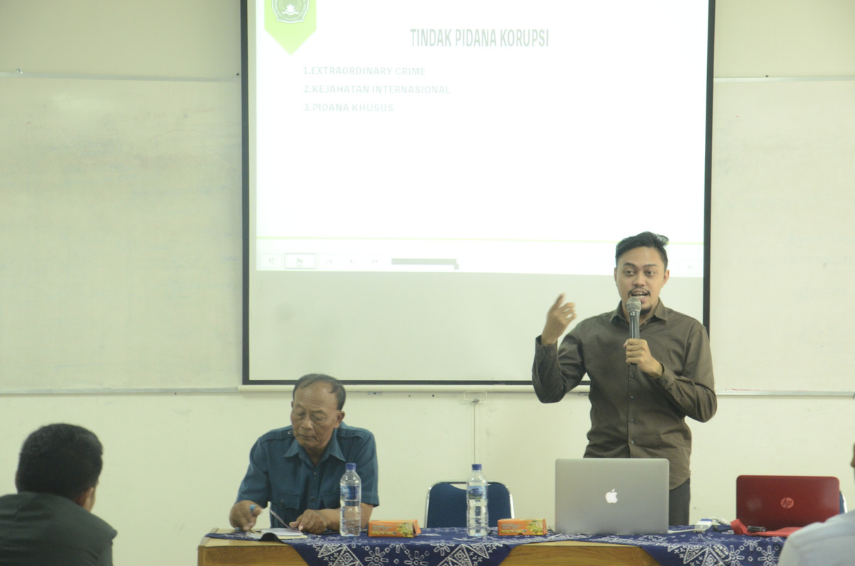 Tema yang diangkat dalam diskusi ini cukup hangat yakni mengenai revisi Undang-Undang Komisi Pemberantasan Korupsi. Diketahui bahwa revisi Undang-Undang Nomor 30 Tahun 2002 tentang Komisi Pemberantasan Korupsi (KPK) telah disetujui oleh DPR dan telah ditindak lanjuti untuk tahap berikutnya. Pengalaman KPK dalam menjalankan amanatnya telah banyak melakukan penindakan terhadap kasus-kasus korupsi. Kinerja KPK yang sudah tidak diragukan lagi dalam melaksanakan pemberantasan korupsi baik dari mengusut perkara besar yang menjerat kepala daerah hingga pengusaha di sektor swasta. Wacana revisi KPK telah ada sejak tahun 2010 hingga pada tahun 2019 ini kemudian DPR resmi untuk merevisi Undang-Undang KPK tersebut walaupun muncul banyak penolakan dari berbagai kalangan baik dari aktivis, akademisi, praktisi, LSM serta Masyarakat Sipil namun revisi tetap dijalankan oleh DPR. Dalam menanggapi hal tersebut, ada beberapa kalangan masyarakat yang setuju dan banyak pula yang tidak setuju. Oleh karena itu, penting kiranya prodi hukum sebagai institusi perguruan tinggi yang mempelajari kajian ilmu hukum untuk mendiskusikan atau menganalisis perkembangan situasi atau perubahan yang ada di masyarakat terutama terkait dengan bidang hukum. Melalui acara diskusi hukum ini diharapkan bisa  membangun kesadaran mahasiswa agar punya perhatian dengan peristiwa-peristiwa hukum yang sedang berkembang di masyarakat serta bisa menanggapinya dengan analisis ilmiah yg kritis sesuai dengan disiplin ilmu hukum  yg mereka pelajari.[niken/kpp]