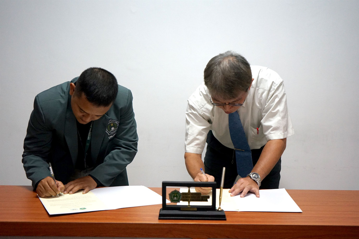 Penandatanganan dilakukan Dekan FTTI Unjaya, Aris Wahyu Murdiyanto, S.Kom., M.Cs. dengan Prof. Hyung-Yu wang, Ph.D., yang mewakili NKUST disaksikan oleh Rektor Unjaya, Prof. Dr. rer.nat.apt., Triana Hertiani S.Si.,MSi., Prof. Stephen S. H. Chang, Ph.D., Prof. Min-Yen Yeh, Ph.D., dari NKUST, dan Mr. Bruce Wen dari Jtron Technology Corporation, serta para pejabat struktural Unjaya. Kerja sama yang dirancang meliputi Collaboration Research, Competency Certification, Scientific Jurnal For: Editor or Reviewer, dan Student Exchange.