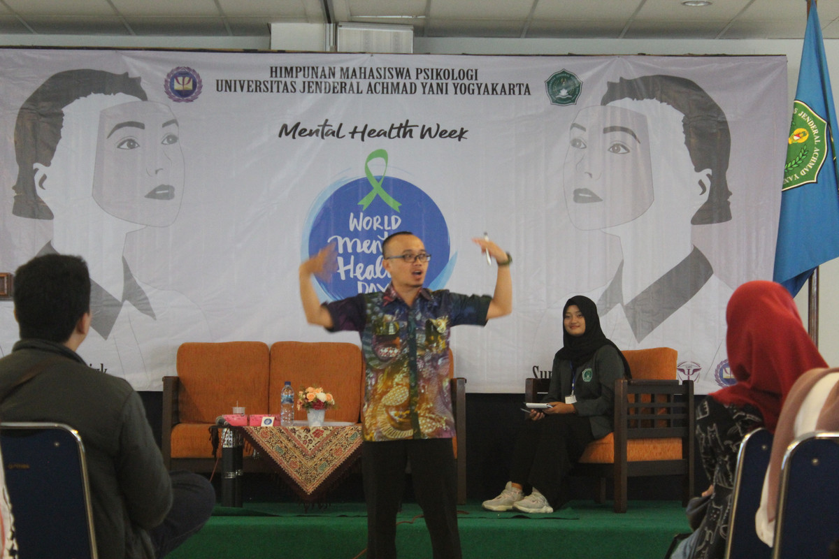 SLEMAN – Tanggal 10 Oktober merupakan tanggal diperingatinya Hari Kesehatan Mental Sedunia. Tak ketinggalan, Himpunan Mahasiswa Psikologi (Himapsi) Universitas Jenderal Achmad Yani (Unjani) Yogyakarta menyelenggarakan serangkaian kegiatan yang merupakan bagian dari Program Kerja Himapsi dalam rangka ikut menyemarakkan Hari Kesehatan Mental Sedunia tahun 2019 dimana World Health Organization (WHO) dengan tema “Bekerja Bersama untuk Mencegah Perilaku Bunuh Diri”. Adapun rangkaian kegiatan “Himapsi Mental Health Week” yang telah diselenggarakan pada bulan Oktober 2019 sebagai berikut: