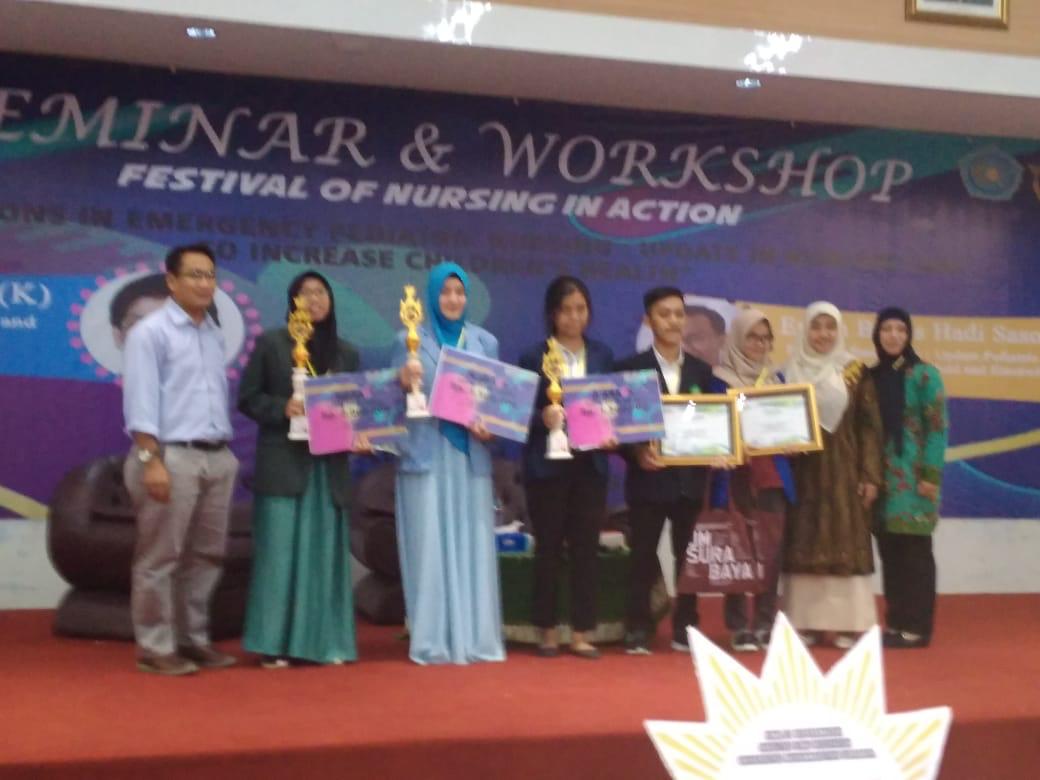 SURABAYA – Berbagai keadaan kegawatdaruratan pada anak seringkali kita hadapi dalam praktek klinis sehari-hari. Kegawatdaruratan ini dapat terjadi di semua cabang ilmu keperawatan anak. Masyarakat saat ini bersikap semakin kritis terhadap praktik profesi keperawatan. Oleh sebab itu kita harus senantiasa meningkatkan dan memperbarui kompetensi dalam menangani berbagai masalah keperawatan pada anak. Inovasi mengenai keperawatan dilakukan oleh delegasi Himpunan Mahasiswa Ilmu Keperawatan (Himika) Universitas Jenderal Achmad Yani (Unjani) Yogyakarta dalam Festival Of Nursing Action 2019 yang diselenggarakan oleh Universitas Muhammadiyah Surabaya pada tanggal 12 s.d. 14 April 2019.