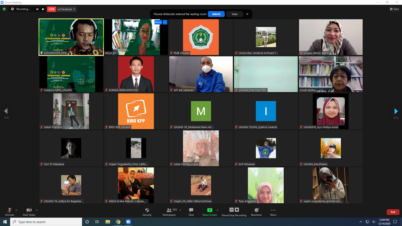 SLEMAN – Bencana merupakan peristiwa yang mengganggu, mengancam dan merugikan kehidupan masyarakat. Terlebih jika bencana datang dengan tiba-tiba ataupun disengaja.Terkait hal itu Universitas Jenderal Achmad Yani Yogyakarta menggelar Webinar Internasional tentang “Disaster Preparedness (Prevention, Solution, And Self-Rescuing)” secara live melalui Zoom dan Youtube, Senin (14/12/2020). Kegiatan tersebut bertujuan untuk memberikan pengetahuan dalam hal kesiapsiagaan dalam menghadapi bencana, dengan harapan kita semua mampu melakukan pencegahan, solusi dan penyelamatan diri. Kegiatan ini sukses mengundang antusiasme ribuan peserta dari berbagai kalangan baik dalam dan luar negeri. Di antaranya, dosen, mahasiswa, tenaga kesehatan, praktisi lapangan baik pemerintah maupun swasta dan masyarakat umum.