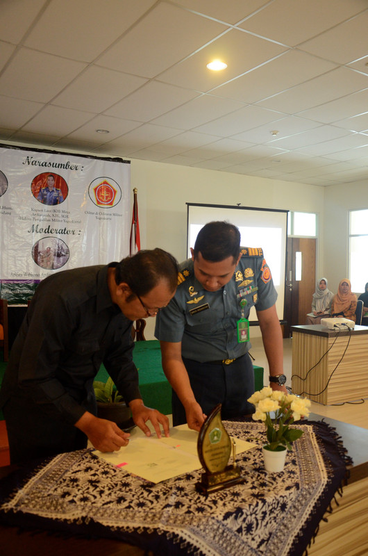 SLEMAN – Bertempat di Kampus 1 Universitas Jenderal Achmad Yani Yogyakarta (Unjani Yogyakarta), pada Rabu (18/12/2019) dalam rangkaain Seminar Hukum Militer diselengarakan penandatanganan kerja sama antara Fakultas Ekonomi dan Sosial Unjani Yogyakarta Pengadilan Militer II-11 Yogyakarta, Oditurat Militer II-10 Yogyakarta, dan Detasemen Polisi Militer (Denpom) IV/2 Yogyakarta selaku stakeholder yang yang menerapkan hukum militer di Yogyakarta. Penandatanganan kerja sama dilakukan oleh Dekan FES Unjani Yogyakarta, Edhy Tri Cahyono, S.Si., M.M dengan Letkol Chk Rudy Dwi Prakamto,S.H. selaku Kepala Pengadilan Militer II-11 Yogyakarta, Kolonel Estiningsih, S.H.,M.H., selaku Kepala Oditurat Militer II-10 Yogyakarta, dan Letkol CPM Amal A. Tarigan, S.H. selaku Komandan Detasemen Polisi Militer (Denpom) IV/2 Yogyakarta.