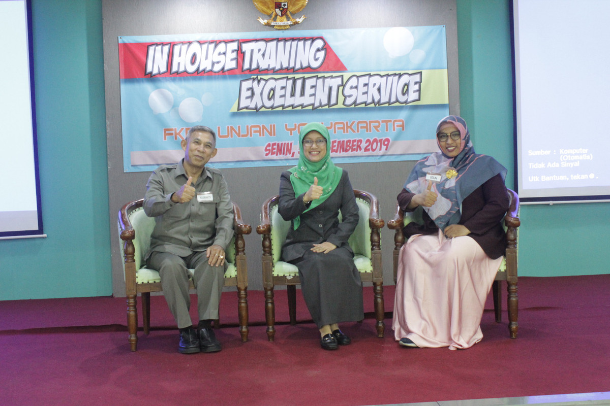 SLEMAN – Bertempat di Gedung Serba Guna, pada Senin (30/12/2019) Fakultas Kesehatan Universitas Jenderal Achmad Yani Yogyakarta bekerja sama degan Citra Emas Training Consultants menyelenggarakan In House Training Excellence Service yang diikuti oleh seluruh Dosen dan Tenaga Kependidikan Fakultas Kesehatan. Kegiatan tersebut di buka oleh Dekan Fkes Unjani Yogyakarta, Kuswanto Hardjo, dr., M.Kes., yang dilanjutkan dengan paparan Evaluasi Program Kerja Fkes Unjani Yogyakarta di tahun 2019 oleh Wakil Dekan II, Tyas Ning Yuni Anggraini, SST., M.Kes. Fkes Unjani Yogyakarta menyadari akan pentingnya pelayanan prima (excellence service) untuk memberikan pelayanan kepada sivitas akademika dengan sebaik-baiknya, maka perlu pemahaman tentang bagaimana teknik-teknik pelayanan oleh Tenaga Kependidikan (Tendik).