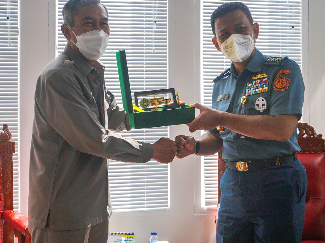 JAKARTA – Dalam rangka menjajaki jalinan kerja sama antara Universitas Jenderal Achmad Yani Yogyakarta (unjaya) dengan Universitas Pertahanan Republik Indonesia (Unhan RI), Rektor Unjaya, Dr. Drs. Djoko Susilo, S.T., M.T., IPU., melaksanakan kunjungan kerja ke Unhan RI yang diterima langsung oleh Rektor Unhan RI, Laksdya TNI Prof. Dr. Ir. Amarulla Octavian, S.T., M.Sc., DESD., di Gedung Program Studi Pasca Sarjana Unhan RI, Salemba, pada Senin, (14/03/2022).