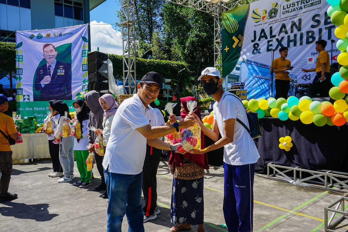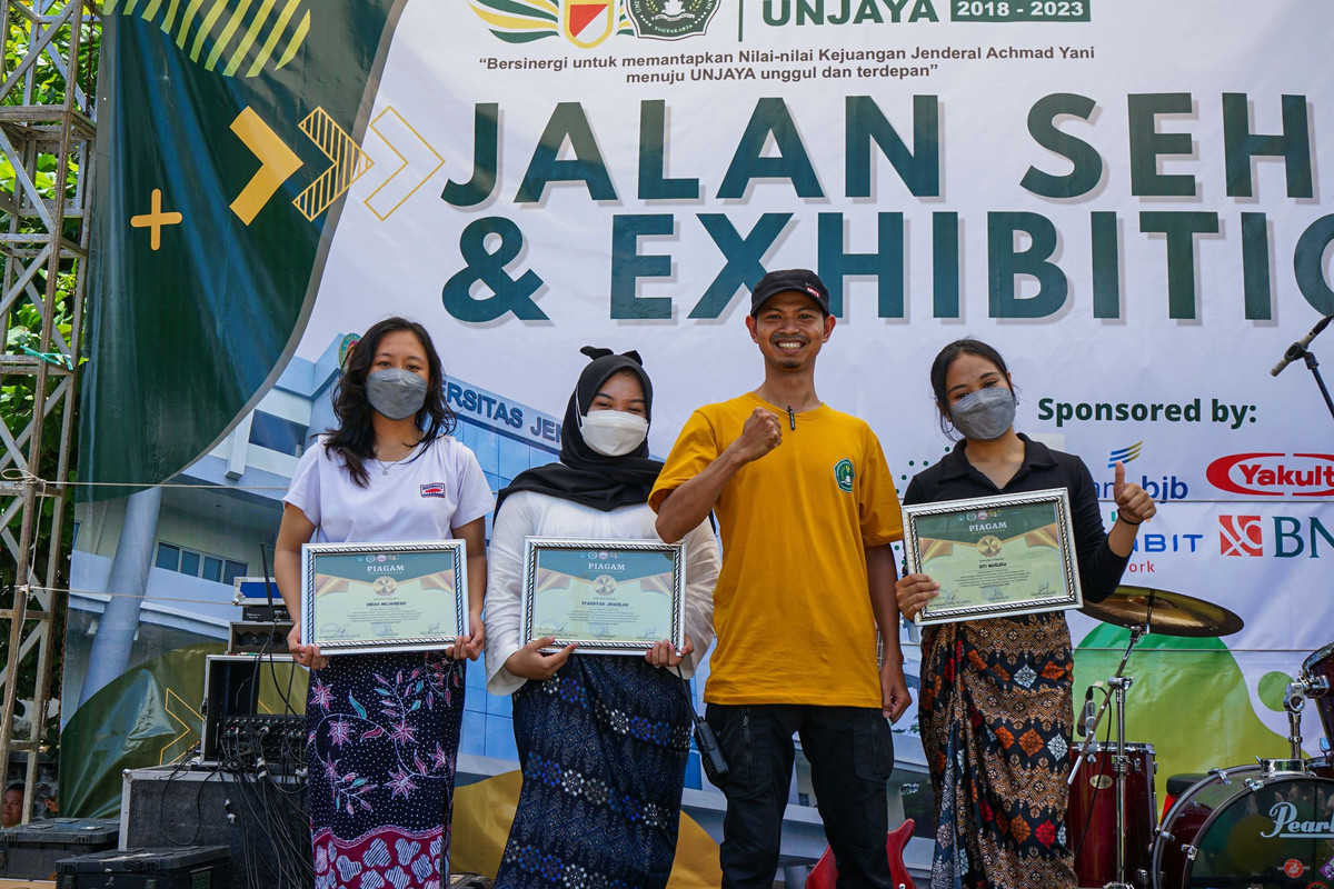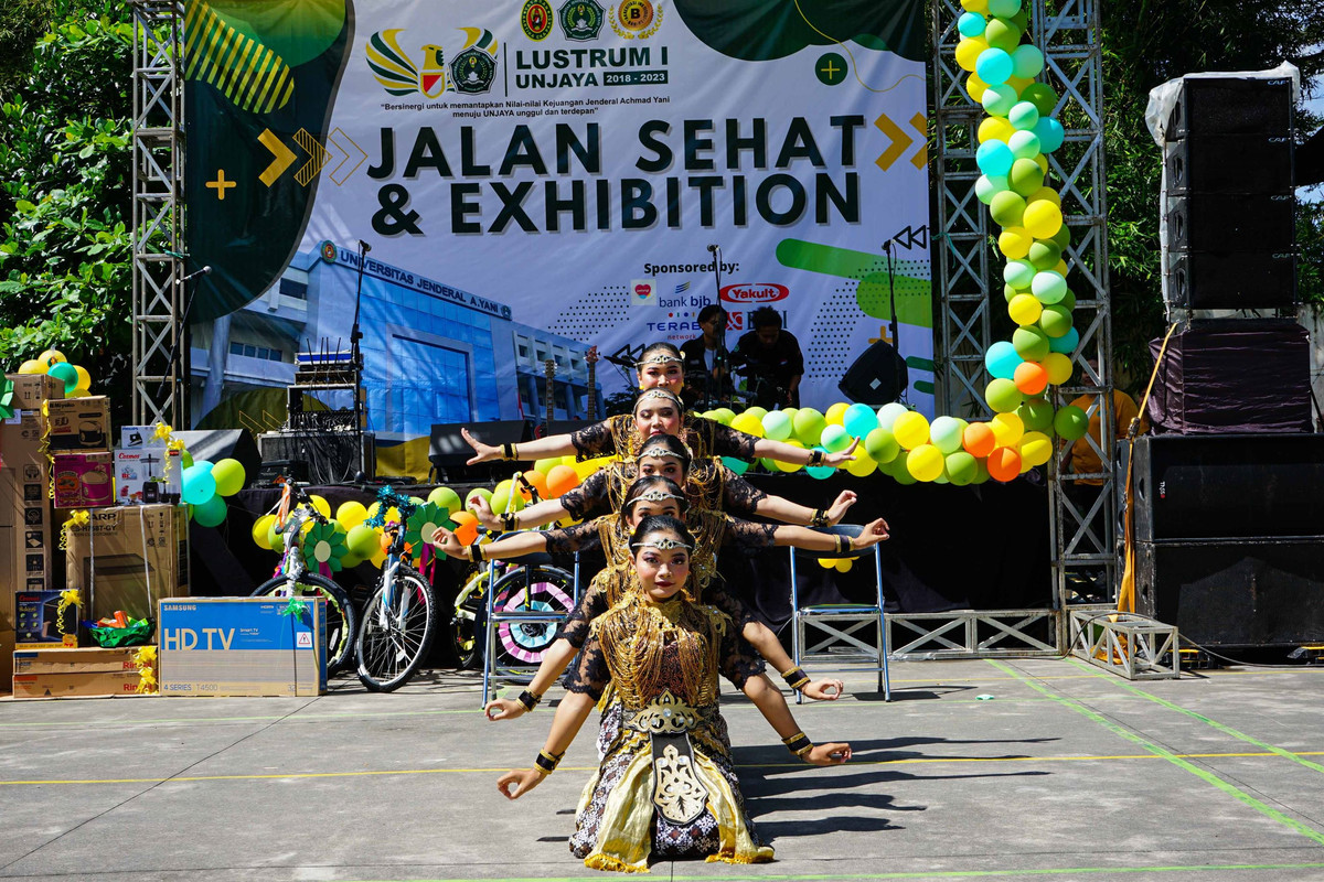 Setelah jalan sehat, peserta kemudian disambut dengan kegiatan Exhibition yang diselenggarakan oleh Organisasi Kemahasiswaan (Ormawa) yang ada di Unjaya, dan panggung hiburan serta pembagian berbagai Doorprize untuk para peserta. Ditemui terpisah, Koordinator Pelaksana Jalan Sehat, Niko Wahyu Nurcahyo, S.T menyampaikan bahwa “Sejalan dengan semangat Lustrum Pertama Unjaya yang mengambil tema Bersinergi untuk memantapkan Nilai-Nilai Kejuangan Jenderal Achmad Yani menuju UNJAYA unggul dan terdepan, kegiatan jalan sehat dipilih sebagai salah satu bentuk sinergi untuk saling menguatkan, saling mendukung, dan saling menanamkan energi kebaikan antara mahasiswa dan pegawai Unjaya beserta masyarakat sekitar kampus. Semoga ke depan, diharapkan pelaksanaan kegiatan yang bermanfaat semacam ini mendapat tanggapan yang positif, peserta yang berpartisipasi lebih banyak lagi , lebih meriah, dan lebih guyub lagi.”