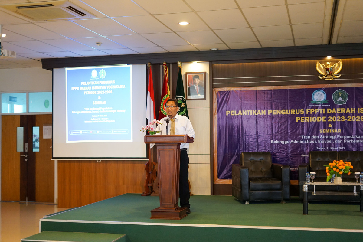 Rangkaian acara kemudian dilanjutkan dengan Seminar dengan tema “Tren dan Strategi Perpustakaan: Belenggu Administrasi, Inovasi, dan Perkembangan Teknologi”. Seminar dibuka oleh Rektor Unjaya, Prof. Dr. rer.nat.apt. Triana Hertiani, S.Si., M.Si. yang menyampaikan selamat kepada Pengurus FPPTI DIY yang sudah dilantik, dan Unjaya merasa bangga karena salah satu pustakawannya dipercaya sebagai Ketua FPPTI DIY periode 2023-2026. Lebih lanjut beliau menyampaikan bahwa peran perpustakaan sangat penting dalam mendukung Tri Dharma Perguruan Tinggi. Tantangan yang dihadapi perpustakaan saat ini adalah literasi di Indonesia masih rendah namun literasi digital semakin meningkat. Seminar dengan dua materi yaitu “The Library of the Future” dan “beyond librarianship” yang disampaikan oleh narasumber, Ida Fajar Priyanto, Ph.D., dan diikuti kurang lebih 87 peserta. [perpus/kpa]