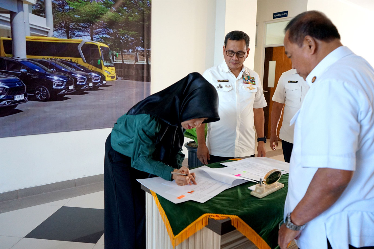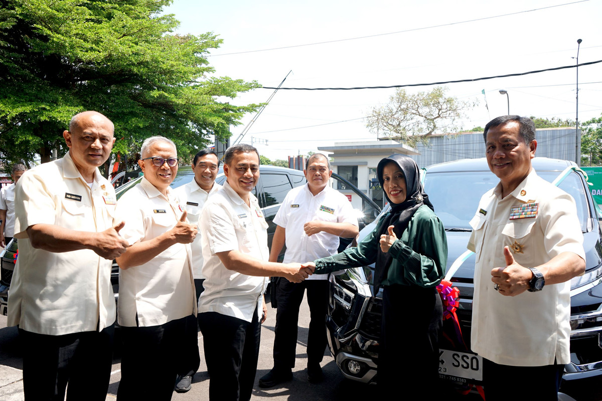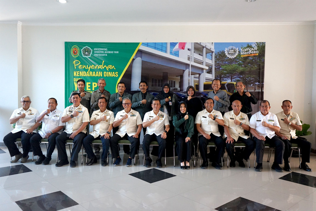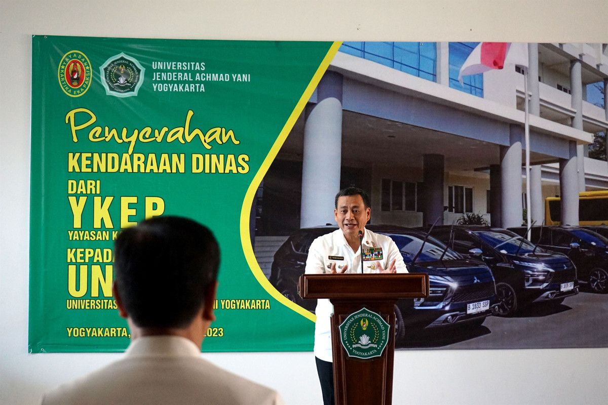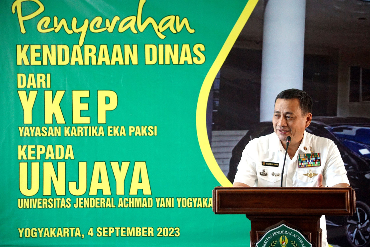 SLEMAN – Bertempat di Lobby Kampus 1 Universitas Jenderal Achmad Yani Yogyakarta (Unjaya), Ketua Pengurus Yayasan Kartika Eka Paksi (YKEP), Letjen TNI (Purn) Dr. Tatang Sulaiman, S.Sos, M.Si., menyerahkan kendaraan dinas berupa 5 unit kendaraan Mitsubishi Xpander yang diterima langsung oleh Rektor Unjaya, Prof. Dr.rer.nat. apt. Triana Hertiani, S.Si., M.Si., pada Senin, (4/9/2023).