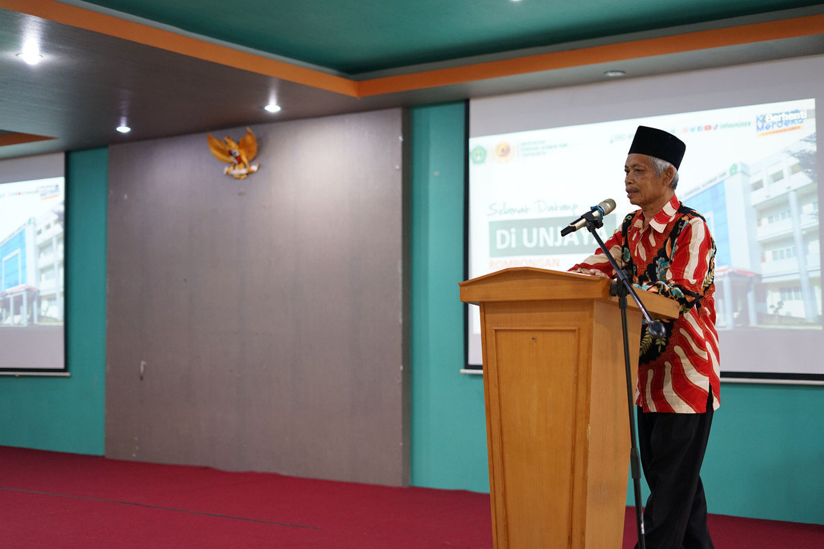 Dalam sambutannya, Kepala Sekolah SMK Roudlotul Huda mengucapkan terima kasih atas penyambutan dan kesediaan Unjaya menjadi salah tujuan SMK Roudlotul Huda dalam kujungan industri dalam mengenalkan profesi-profesi unggalan masa depan, serta mengenalkan lingkungan Unjaya sebagai tempat pendidikan para #AchmadYaniMuda. Sedangkan dalam sambutannya, Rektor Unjaya, Prof. Dr. rer.nat.apt. Triana Hertiani, S.Si., M.Si., yang diwakili Kabiro KPA Unjaya menyampaikan selamat datang kepada para guru dan siswa SMK Roudlotul Huda Padangratu Lampung Tengahdan berharap kunjungan ini dapat memberikan gambaran yang nyata tentang pendidikan tinggi, khusunya di Unjaya. Kegiatan kunjungan di lingkungan Unjaya selaras dengan semangat Unjaya untuk Maju Bersama dan Sukses Bersama, dan juga sesuai dengan visi Unjaya untuk mewarisi nilai-nilai kejuangan Jenderal Achmad Yani. [kpa]