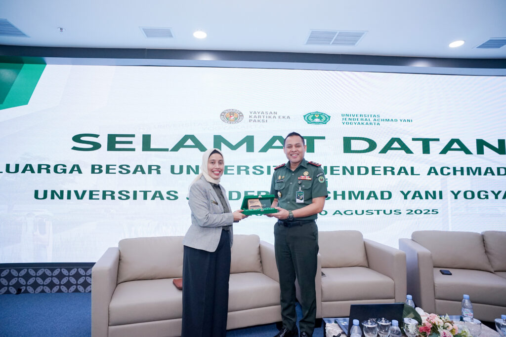 Sleman – Universitas Jenderal Achmad Yani Yogyakarta (Unjaya) menerima kunjungan resmi dari Universitas Jenderal Achmad Yani (Unjani) Cimahi di Kampus Unjaya, pada Rabu, (20/8). Kunjungan ini merupakan langkah strategis dalam memperkuat sinergi, menjalin silaturahmi, sekaligus melaksanakan amanah Badan Pengurus Harian (BPH) Yayasan Kartika Eka Paksi (YKEP).