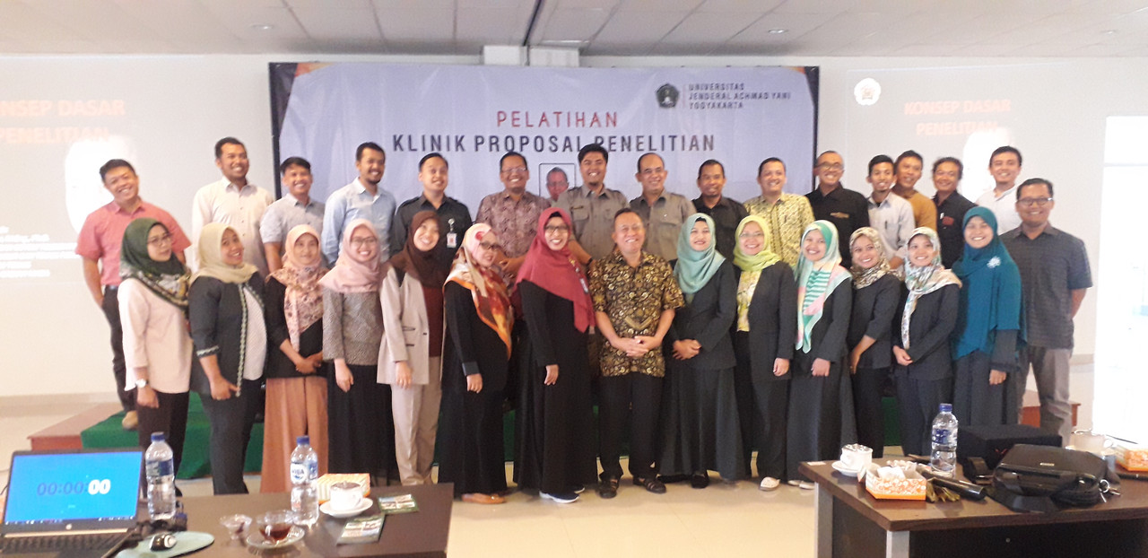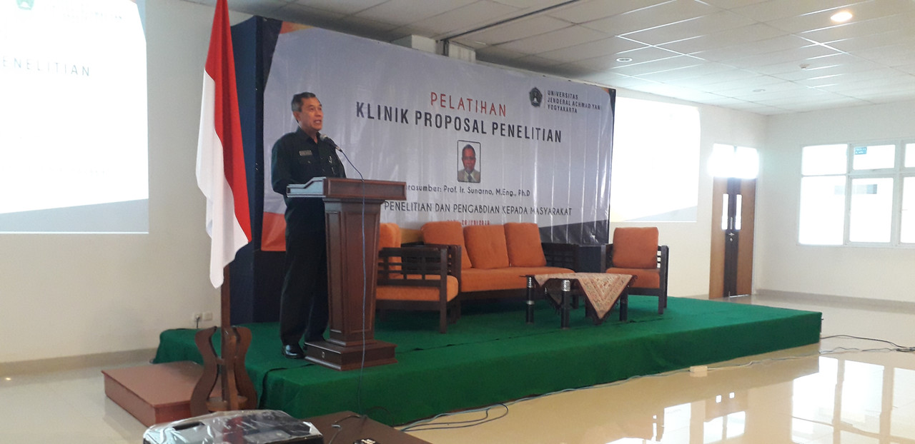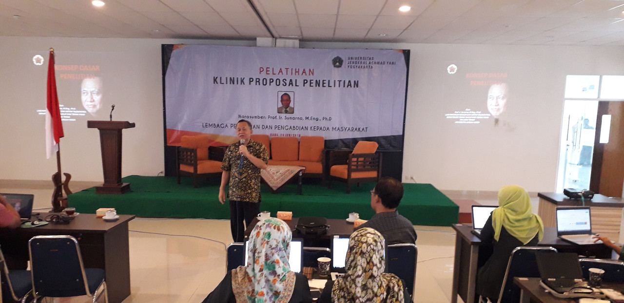 Hari Rabu 26 Juni 2019 di Auditorium Unjani Yogyakarta telah dilaksanakan pelatihan penyusunan proposal dan review proposal penelitian lanjutan bagi dosen untuk mendapatkan hibah skeman yang lebih tinggi yaitu Penelitian Dasar, Penelitian Terapan, Penelitian Pengembangan, Penelitian Kerjasama antar Perguruan Tinggi, dan Insinas. Kegiatan klinik proposal lanjutan dibuka oleh Rektor Unjani Yogyakarta Dr. Drs. Djoko Susilo, ST., MT. Pada pembukaan kegiatan Rektor menyampaiakan bahwa setiap dosen wajib melaksanakan Tridaharma Perguruan Tinggi yang salah satunya adalah penelitian. Penelitian tidak hanya sebagai suatu kegiatan biasa, namun harus ada tindaklanjutnya yang berdampak tidak hanya bagi dosen itu sendiri, namun program studi dan institusi perguruan tinggi, yaitu dalam proses akreditasi. Rektor menambahkan sebagai institusi pendidikan berbasis militer, diasumsikan dosen adalah prajurit yang harus membawa senjata saat perang maupun tidak, artinya dosen harus selalu siap dengan senjatanya yaitu karya penelitian dimanakapun kapanpun berada.