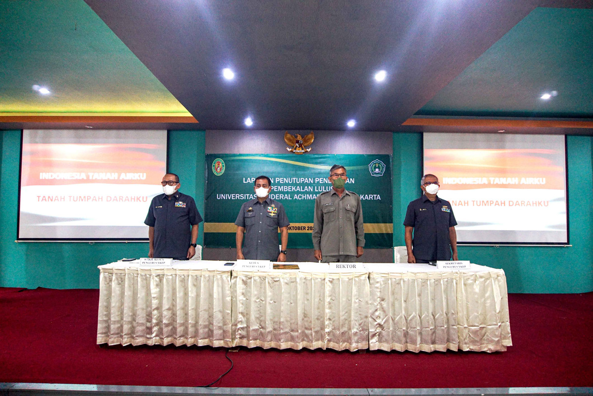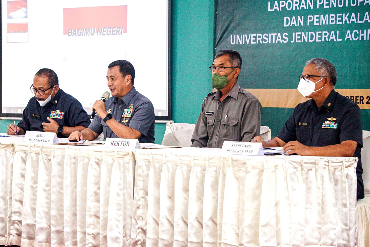 SLEMAN – Bertempat di Gedung Serba Guna (GSG) Kampus 2 Universitas Jenderal Achmad Yani Yogyakarta (Unjaya), Ketua Pengurus Yayasan Kartika Eka Paksi (YKEP), Letjen TNI (Purn) Tatang Sulaiman, S.Sos, M.Si., didampingi Wakil Ketua Pengurus YKEP, Mayjen TNI (Purn) Muhammad Bambang Taufik, Kabiddik YKEP, Mayjen TNI (Purn) Benny Indra Pujihastono, S.I.P., dan Rektor Unjaya, Dr. Drs. Djoko Susilo, S.T., M.T., IPU., memberikan pembekalan kepada 527 calon wisudawan dan wisudawati pada Rabu, (12/10/22).