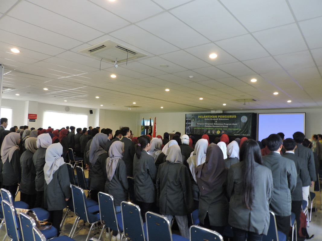 Kegiatan Pengukuhan dan Pelantikan Pengurus BEM dan HIMA di Lingkungan Fakultas Ekonomi dan Sosial Unjani Yogyakarta dihadiri oleh seluruh mahasiswa, ketua program studi dan dosen di lingkungan FES Unjani Yogyakarta [irf/kpp]