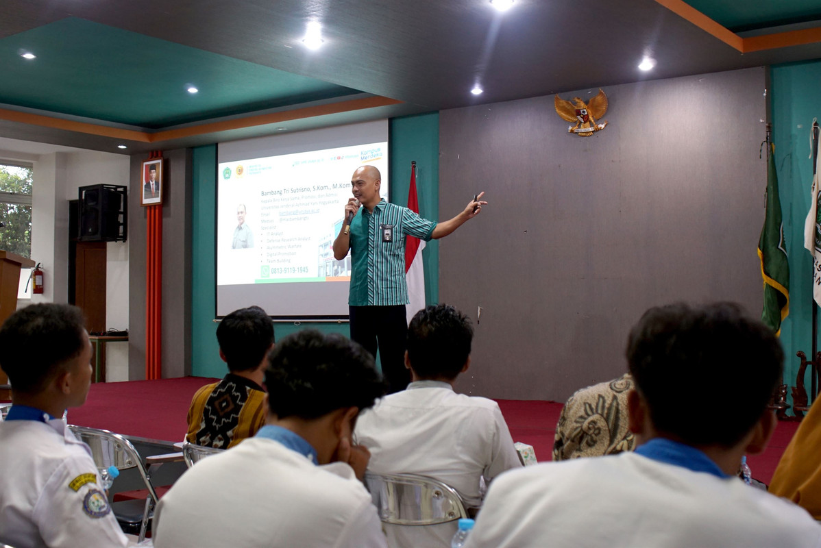 SLEMAN – Bertempat di Gedung Serba Guna Kampus 2, Universitas Jenderal Achmad Yani Yogyakarta (Unjaya) kembali menerima kunjungan dari SMK Kesehatan Bhakti Nusantara Tulang Bawang Lampung pada Selasa, (6/5/2023). Rombongan SMK Kesehatan Bhakti Nusantara Tulang Bawang Lampung yang terdiri dari 50 Siswa dan 8 guru pendamping dipimpin oleh Kepala Sekolah, Khomsinuddin, M.Pd. diterima langsung oleh Kabiro Kerja Sama, Promosi, dan Admisi (KPA) Unjaya, Bambang Tri Sutrisno, S.Kom., M.Kom.