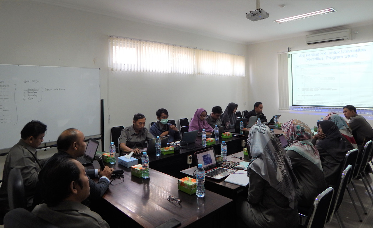 Dekan FES Unjani Yogyakarta, Bapak Edhy Tri Cahyono, S.Si., M.M dalam sambutan pembukaan menyatakan bahwa HKI harus dipahami dengan baik oleh para dosen mengingat arti penting dan strategisnya kepemilikian HKI bagi dosen khususnya dan bagi lembaga pendidikan tinggi pada umumnya. Karenanya beliau mengharapkan dan mendorong kepada para dosen untuk bisa menghasilkan penelitian atau karya pengabdian masyarakat yang bermutu dan dapat didaftarkan untuk mendapat perlindungan HKI dan Paten khususnya di bidang ilmu ekonomi dan sosial. Dr. Budi Agus Riswadi mengawali penyampaian materinya dengan membahas arti pentingnya  HKI baik secara idealis maupun pragmatis untuk Universitas (Akreditasi Program Studi, penilain angka kredit dosen), juga menjelaskan secara detail apa itu HKI, apa saja yang dapat di-HKI-kan, dan prosedur perolehan HKI. Narasumber menyampaikan bahwa HKI adalah hak yang timbul dari hasil olah pikir manusia berupa suatu produk. Ada beberapa klasifikasi dari HKI, diantaranya adalah Hak Cipta dan Hak Terkait, Paten, Hak atas Merek, Hak atas Desain Industri, Hak atas Rahasia Dagang, Hak atas Indikasi Geografis, Perlindungan Varitas Tanaman. Selain itu, beliau juga menyampaikan, “kenapa Universitas harus peduli dengan HKI?” karena Universitas adalah sentra kegiatan intelektual yang dapat menghasilkan HKI. Oleh karena itu Universitas memiliki kewajiban untuk mendorong dosen-dosennya melakukan riset yang berbasis pada luaran yang salah satu luarannya bisa diorientasikan pada HKI. Beberapa keuntungan memiliki HKI diantaranya adalah mendapatkan perlindungan dan penghargaan, memperoleh pengembalian dana investasi dari riset serta mengembangkan ilmu pengetahuan dan teknologi secara berkelanjutan.