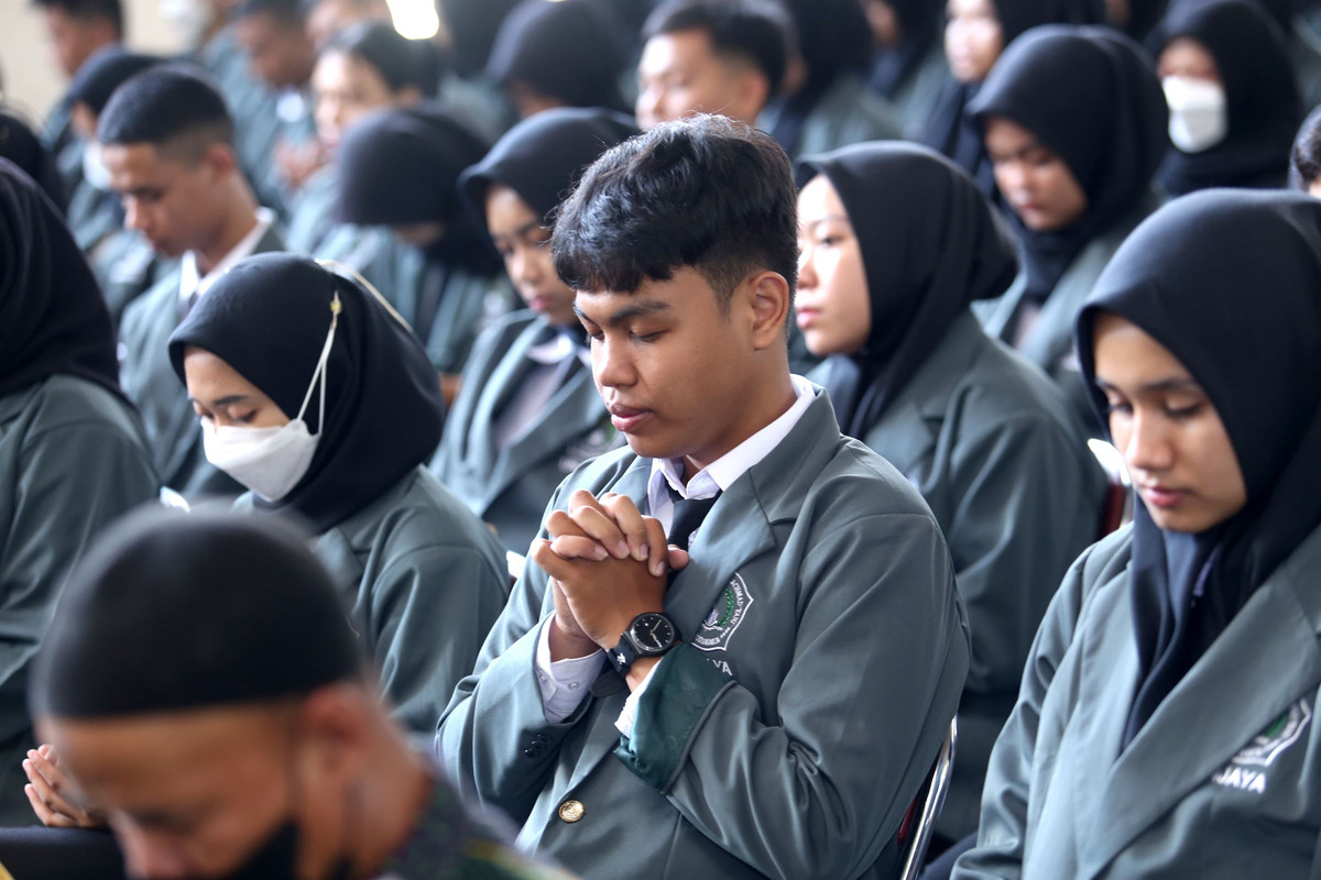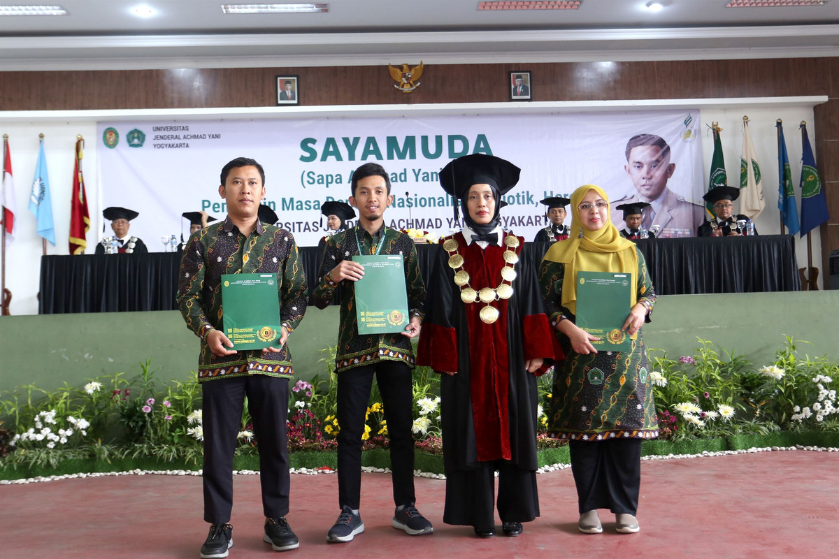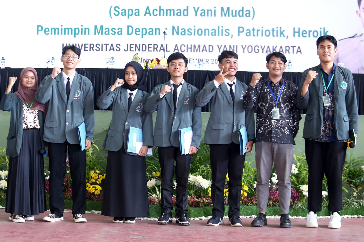 SLEMAN – Bertempat di GOR Batalyon Infanteri Mekanis 403/Wirasada Pratista, diselenggarakannya Sidang Senat Terbuka Universitas Jenderal Achmad Yani Yogyakarta (Unjaya) dalam rangka pengukuhan Mahasiswa Baru Tahun 2023 pada Kamis, (7/9/2023). Pengukuhan mahasiswa baru Unjaya tahun 2023 ditandai dengan pemasangan jaket almamater kepada perwakilan mahasiswa baru oleh oleh Ketua Senat sekaligus Rektor Unjaya, Prof. Dr.rer.nat. apt. Triana Hertiani, S.Si., M.Si., dan dilanjutkan dengan pembacaan Janji Mahasiswa Unjaya yang di ikuti seluruh mahasiswa Unjaya dan penyerahan mahasiswa dari Rektor Unjaya kepada para Dekan dilingkungan Unjaya.