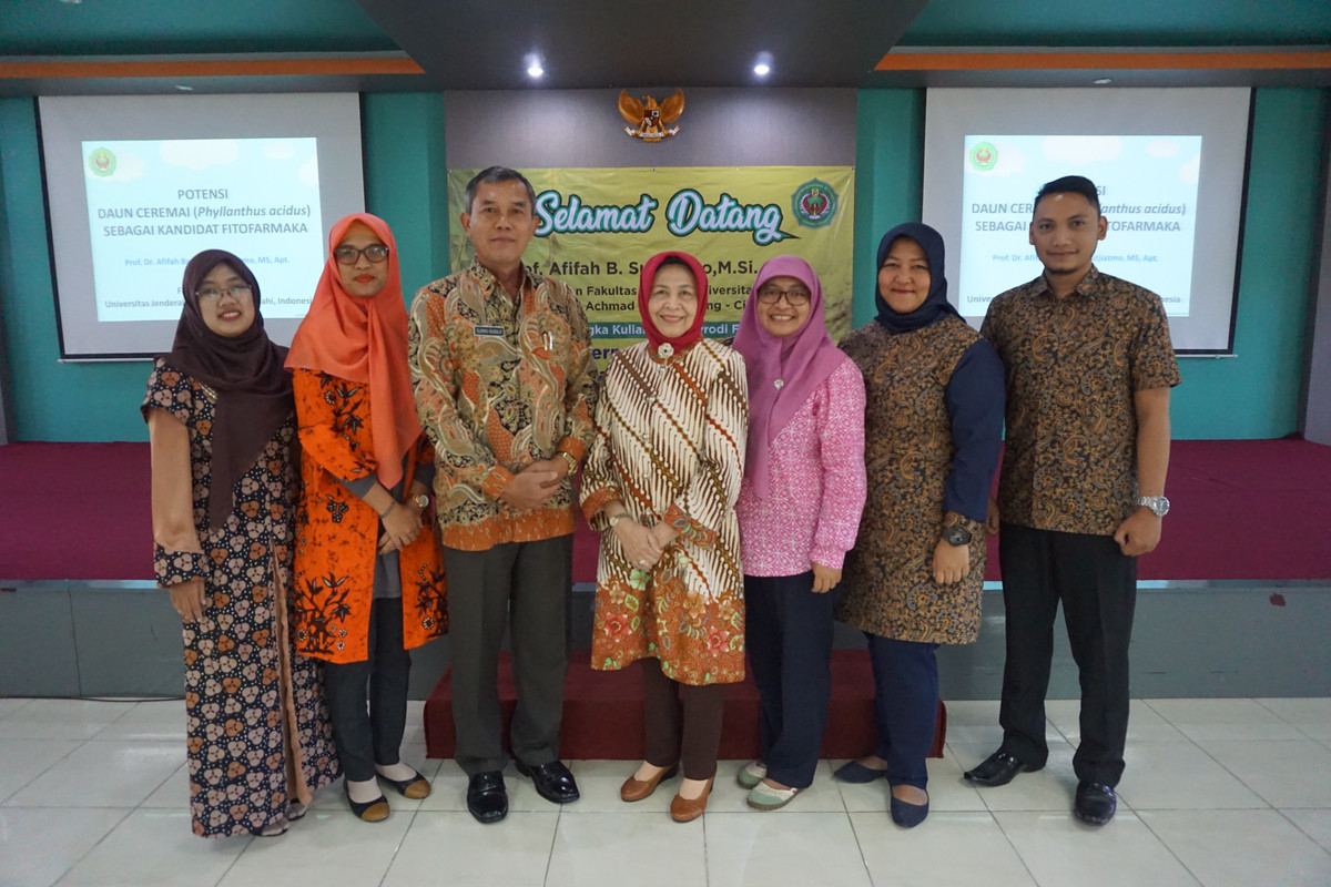 SLEMAN – Bertempat di Gedung Serbaguna Fakultas Kesehatan Universitas Jenderal Achmad Yani (Unjani) Yogyakarta, pada Jumat (01/02/19), Prodi Farmasi Unjani Yogyakarta menyelenggarakan Review Kurikulum dan Kuliah Umum dengan menghadirkan Dekan Fakultas Farmasi Unjani Cimahi, Prof. Afifah B. Sutjiatmo, M.Si., Apt. Menurut Ketua Prodi Farmasi Unjani Yogyakarta, Kurnia Rahayu P M.Sc., Apt. review kurikulum dimaksudkan untuk mengevaluasi capaian dan target kurikulum yang saat ini dijalankan di Prodi Farmasi Unjani Yogyakarta, dihadapkan pada pengalaman Fakultas Farmasi Unjani Cimahi yang telah lama berdiri. Sedangkan dalam kuliah umum yang disampaikan oleh Prof. Afifah B. Sutjiatmo, M.Si., Apt. bertema tentang Potensi Cermai (Phyllantus Acidus) sebagai Kandidat Fitofarmaka dalam pengembangan obat herbal di Indonesia. Lebih lanjut Prof. Afifah menyampaikan bahwa tanaman cermai yang telah diteliti sebagai antihipertensi, sangat berpotensi untuk dikembangkan menjadi fitofarmaka sehingga Dosen dan Mahasiswa dapat terus menggalinya dengan berbagai penelitian, sehingga kelak dapat bermanfaat untuk masyarakat Indonesia.