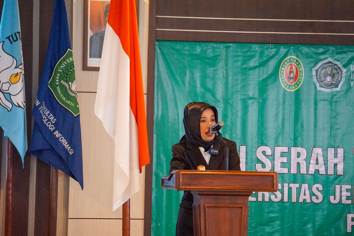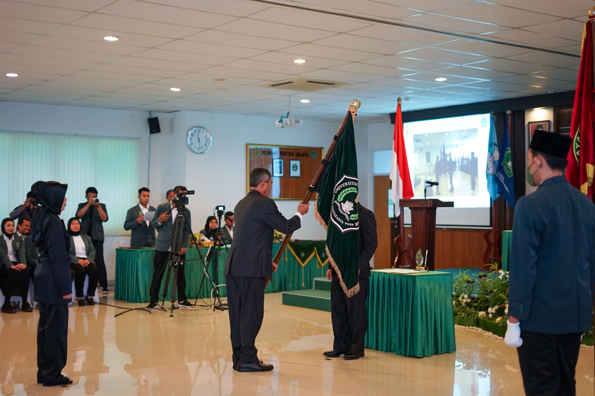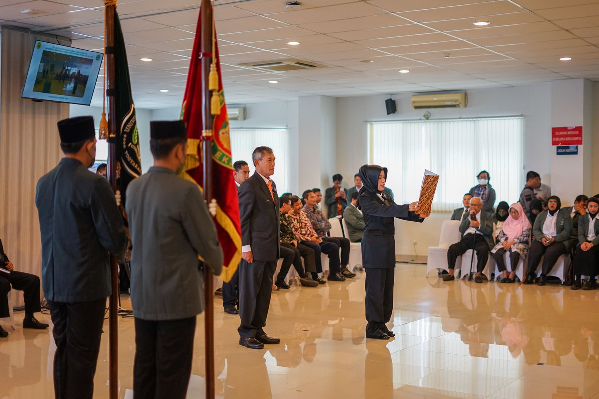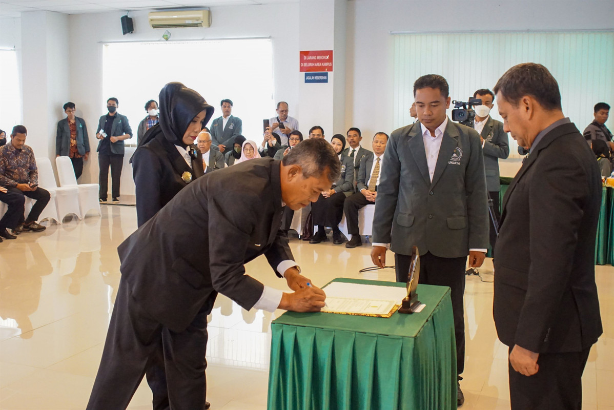 SLEMAN – Bertempat di Ruang Auditorium Lt. 4 Kampus 1 Universitas Jenderal Achmad Yani Yogyakarta (Unjaya) diselenggarakan acara pelantikan dan serah terima jabatan (sertijab) Rektor Periode 2023-2027 pada Kamis, (16/02/2023). Dr. Drs. Djoko Susilo, S.T., M.T., IPU., selaku Rektor Unjaya periode 2018-2023 menyerahkan tugas, wewenang dan tanggung jawab jabatan kepada Rektor Unjaya terpilih periode 2023 – 2027, Prof. Dr. rer.nat.apt. Triana Hertiani, S.Si., M.Si.