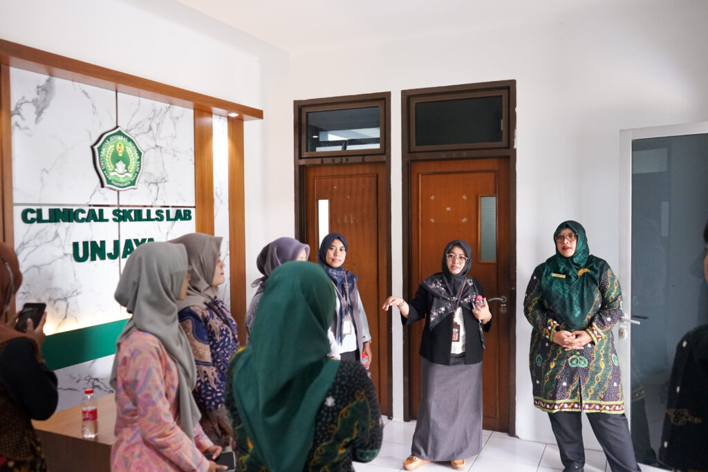 Rangkaian kegiatan juga mencakup pembahasan tantangan dalam pembangunan fasilitas, pemenuhan standar asesmen, dan desain ruang yang mendukung alur fungsional pembelajaran. Tim tamu turut diajak meninjau OSCE Center Unjaya yang telah dilengkapi perlengkapan berstandar nasional.