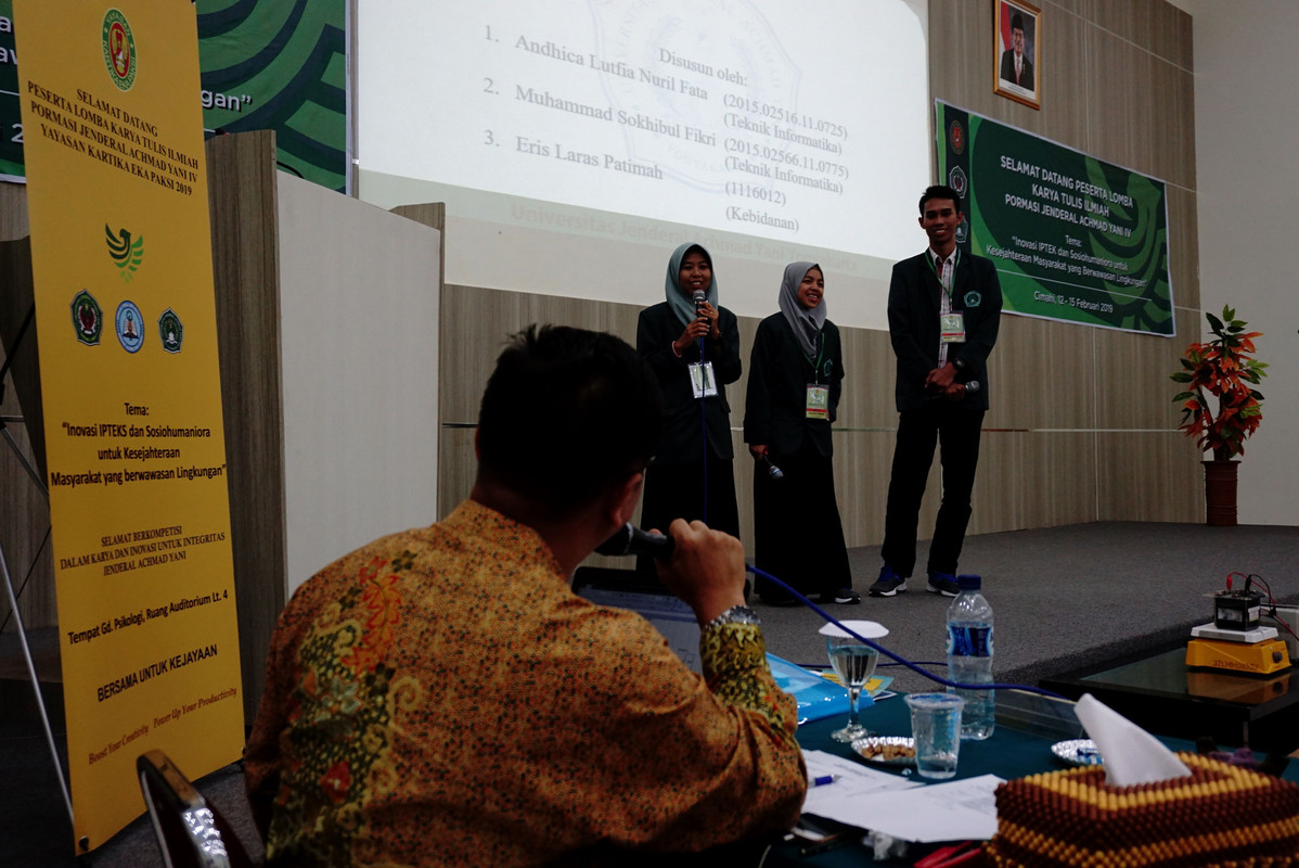 CIMAHI-Tim Karya Ilmiah Universitas Jenderal Achmad Yani Yogyakarta berhasil memborong medali dari cabang karya ilmiah dengan berhasil menjadi Juara I dan Juara III dalam lomba yang diselenggarakan di Aula Lt.4 Fakultas Psikologi Universitas Jenderal Achmad Yani Cimahi, pada (12/02/2019) sore. Tim Unjani Yogyakarta 1 yang terdiri dari Andhica Lutfia Nuril Fata (Teknik Informatika), Muhammad Sokhibul Fikri (Teknik Informatika), dan Eris Laras Patimah (Kebidanan) dibawah bimbingan Muhammad Habibi, S. Kom., M.Cs. berhasil mempertahankan hasil penelitiannya dihadapan dewan juri dengan judul penelitian “Child Growth Smart E-Heath untuk Deteksi Dini Perkembangan Anak” dan berhasil merebut Juara I, sedangkan tim Unjani Yogyakarta 2 yang terdiri dari Mochamad Soffa Uzer (Teknik Informatika), Dwi Nugroho (Teknik Informatika), dan Iqbal Hadi Subekti (Sistem Informasi) dibawah bimbingan Muhammad Rifqi Ma’arif, S.T., M.Eng. juga berhasil mempresentasikan hasil penelitiannya dengan baik dihadapan dewan juri dengan judul penelitian “Purwarupa Sistem Pengendalian Kualitas Air pada Kolam Pembibitan Ikan menggunakan Sensor berbasis Mikrokontroller Arduino” dan berhasil merebut Juara III.