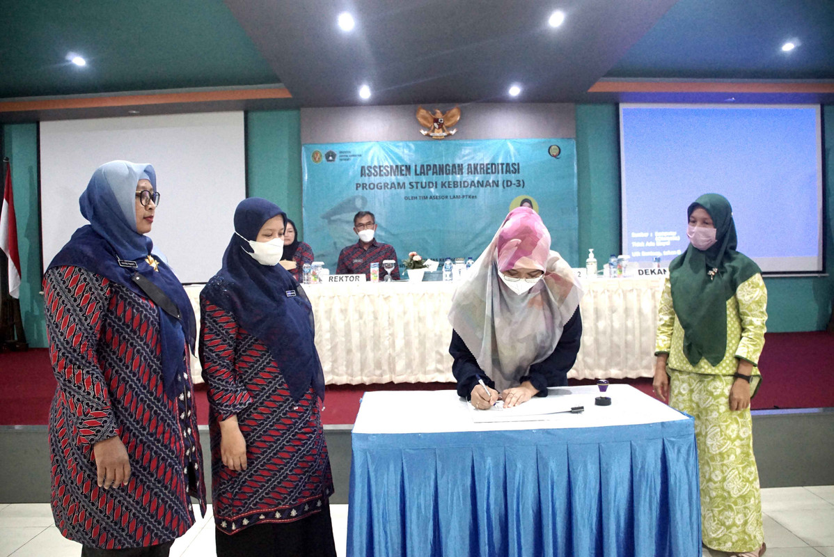 Kegiatan akreditasi di hari pertama meliputi peninjauan berbagai fasilitas yang dimiliki oleh Prodi Kebidanan (D-3) dan penunjang perkuliahan lainnya yang dilanjutkan dengan konfirmasi berbagai dokumen yang yang telah disampaikan ke LAM-PTKes. Sedangkan pada hari kedua dilakukan peninjauan berbagai fasilitas lahan praktik Prodi Kebidanan (D-3) yang dilanjutkan dengan konfirmasi berbagai dokumen dan diakhiri dengan penandatanganan berita acara oleh Tim Assesor LAM-PTKes dan ketua Prodi Kebidanan (D-3) Unjaya, ka Fitria Ayuningtyas, S.Si.T., M. Kes., yang disaksikan oleh Rektor Unjaya, Dr. Drs. Djoko Susilo, S.T., M.T., IPU., Dekan Fkes Unjaya, Ida Nursanti, S.Kep., Ns., M.P.H., Wadek 1 Fkes Unjaya, Lily Yulaikhah, S.Si.T., M.Keb., Wakil Dekan 2 Fkes Unjaya, Tyasning Yuni Astuti A.,SST.,M.Kes., para Dosen Prodi Kebidanan (D-3) dan tenaga kependidikan terkait.