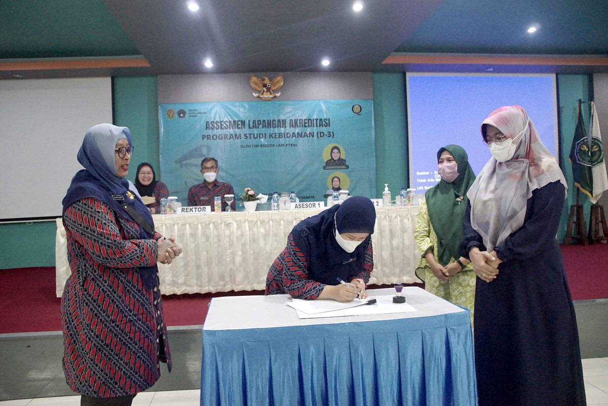 SLEMAN –Prodi Kebidanan (D-3) Fakultas Kesehatan Universitas Jenderal Achmad Yani Yogyakarta (Fkes Unjaya) kembali mengajukan Reakreditasi yang kemudian ditindaklanjuti dengan proses Assesmen Lapangan oleh Tim Lembaga Akreditasi Mandiri Pendidikan Tinggi Kesehatan Indonesia (LAM-PTKes) pada Rabu-Jumat, (18-20/05/2022). Tim LAM-PTKes terdiri dari Ibu Dini Saraswati Handayani, S.ST., MKM., dan Ibu Dr. Nurmiaty, S.SiT, MPH. yang disambut langsung oleh Rektor Unjaya, Dr. Drs. Djoko Susilo, S.T., M.T., IPU., yang didampingi oleh Sekretaris BPH Unjaya, Hariyanta, S.E, M.Si., Wakil Rektor 1 Unjaya, Wenny Savitri, S.Kep., Ns., MNS., Dekan Fkes Unjaya, Ida Nursanti, S.Kep., Ns., M.P.H., Ketua Lembaga Penjaminan Mutu (LPM) Unjaya, Rahayu Iskandar, S. Kep, Ners., M.Kep., beserta para pejabat struktural Rektorat dan Fakultas Kesehatan di Gedung Serba Guna Kampus 2, Jl. Brawijaya Ringroad Barat, Gamping, Sleman, Yogyakarta.