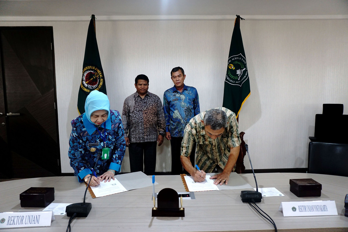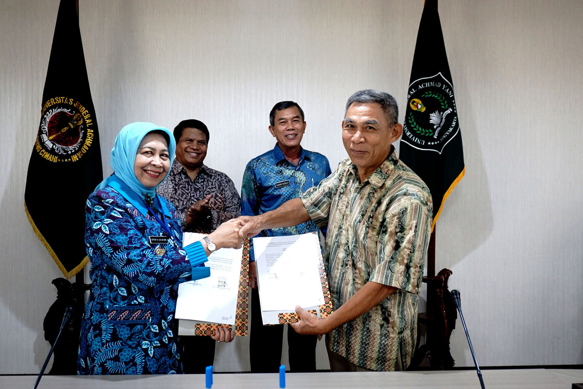 CIMAHI – Dalam rangka meningkatkan kualitas pendidikan, Universitas Jenderal Achmad Yani Cimahi dan Universitas Jenderal Achmad Yani Yogyakarta malaksanakan kerjasama dalam bidang pendidikan, pengabdian kepada masyarakat, penelitian, pengembangan Sumber Daya Manusia (SDM), dan kegiatan lain, yang ditandai dengan penandatangan Nota Kesepakatan Bersama (Memorandum of Understanding) yang dilakukan oleh Rektor Unjani Cimahi , Mayjen TNI (Purn) Witjaksono, M.Sc., NSS. dan Rektor Unjani Yogyakarta, Brigjen TNI (Pur) Dr. Drs. Djoko Susilo, S.T., M.T. bertempat di Ruang Rapat Utama Rektorat Unjani Cimahi, pada Jumat (15/02/2019).