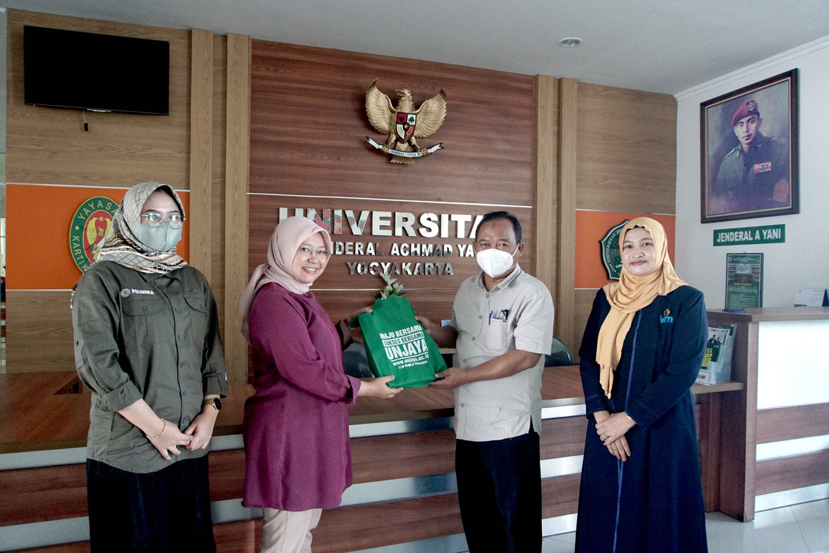 SLEMAN – Bertempat di Ruang rapat Lt.1 Kampus 1 Universitas Jenderal Achmad Yani Yogyakarta (Unjaya), dilaksanakan penerimaan kunjungan dari Politeknik Negeri Indramayu (Polindra) dalam rangka Studi banding pengelolan Jurnal pada Jumat, (25/11/ 2022). Tim dari Polindra dipimpin oleh Bachtiar Efendi, S.Kep., Ns., M.H., didampingi oleh Niken Wulan H. M., M.Kep., disambut langsung oleh Wakil Rektor 2 Unjaya, Lily Yulaikhah, M.Keb., didampingi oleh kepala Lembaga Penelitian dan Pengabdian Kepada Masyarakat (LPPM) Unjaya, Dr. Tri Sunarsih, M. Kes., Kepala Bagian Kerja Sama Unjaya, Suwarno, S.Kep., Ns., MNS., Kepala Pusat Penelitian dan Pengabdian Masyarakat Fakultas Kesehatan (PPPM Fkes) Unjaya, Dian Puspitasari, S.ST., M.Keb., dan para pengelola Jurnal dan di Unjaya.