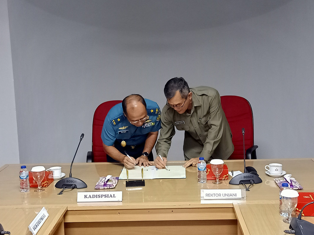 SIDOARJO – Sebagai upaya meningkatkan kualitas Tridharma dan mewujudkan salah satu kekhasan yang dimiliki oleh Program Studi Psikologi dalam kajian psikologi militer, dilakukan penandatangan kerja sama antara Universitas Jenderal Achmad Yani Yogyakarta (Unjani Yogyakarta) dan Dinas Psikologi TNI Angkatan Laut (Dispsial). Penandatanganan kerja sama dilakukan oleh Rektor Unjani Yogyakarta, Dr. Drs. Djoko Susilo, S.T., M.T., dan Kepala Dinas Psikologi TNI Angkatan Laut, Laksamana Pertama (Laksma) TNI Drs. Tri Budi Marwanto, M.M., Psikolog, bertempat di Markas Dispsial, Jalan Raya Juanda Km. 1 Sidoarjo, Jawa Timur, pada Jumat, (20/09/19).