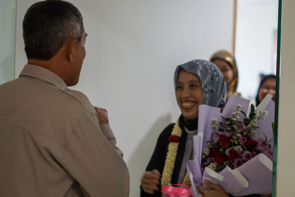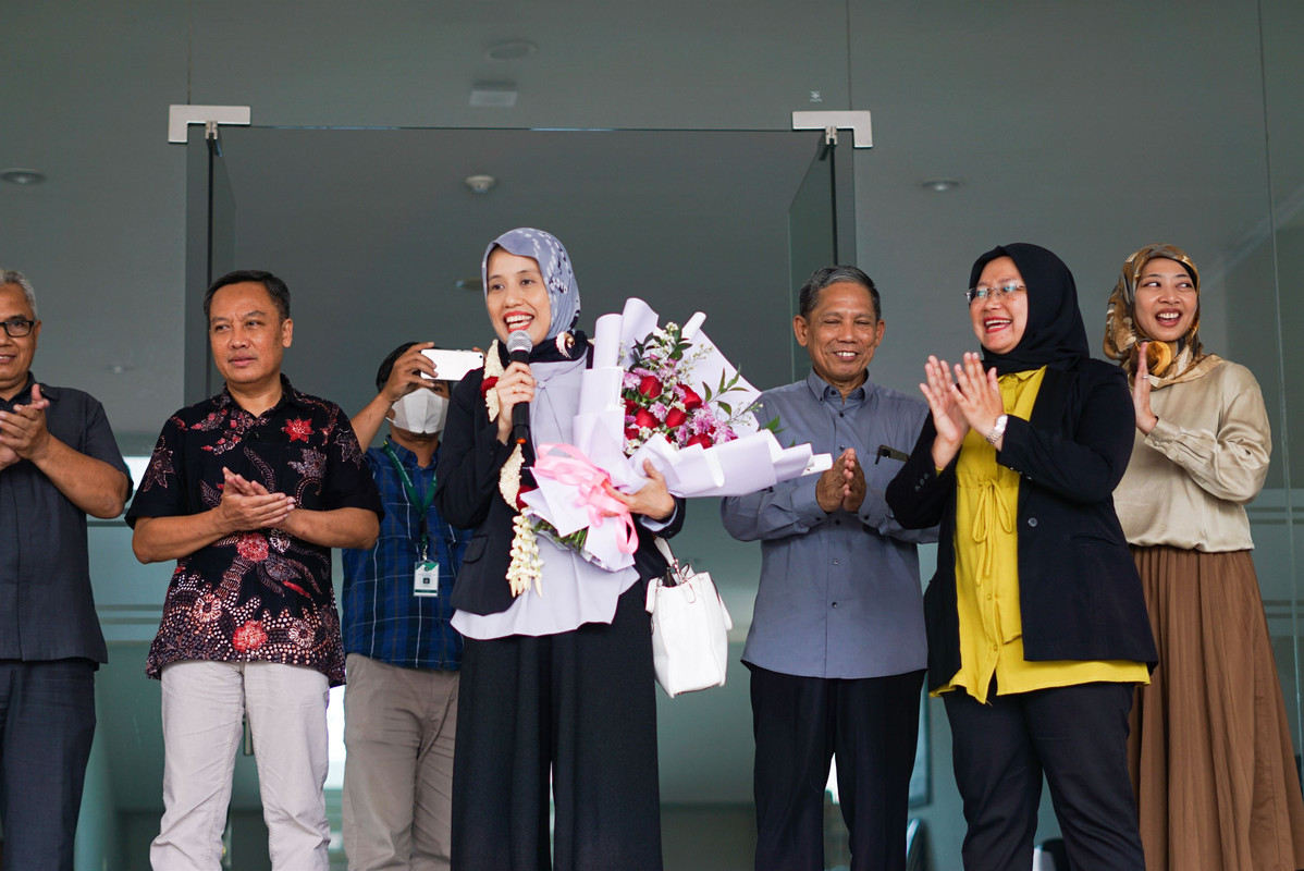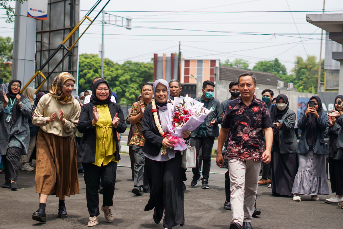 SLEMAN – Bertempat di Halaman Kampus 1 Universitas Jenderal Achmad Yani Yogyakarta (Unjaya) diselenggarakan acara penyambutan Rektor terpilih Unjaya periode 2023-2027, Prof. Dr. rer.nat.apt. Triana Hertiani, S.Si., M.Si., didampingi Suami, Dr.soc.pol. Agus Heruanto Hadna, M.Si., pada Rabu, (15/02/2023). Acara penyambutan oleh segenap sivitas akademika Unjaya diawali pengalungan bunga oleh Warek 1 Unjaya, Wenny Savitri, S.Kep., Ns., MNS., dan pemberian bunga oleh Warek 2 Unjaya, Lily Yulaikhah, M.Keb. Setelah itu dilanjutkan dengan iringan lagu “selamat datang rektor Unjaya” pada saat jalan menuju lobby Kampus 1 Unjaya.