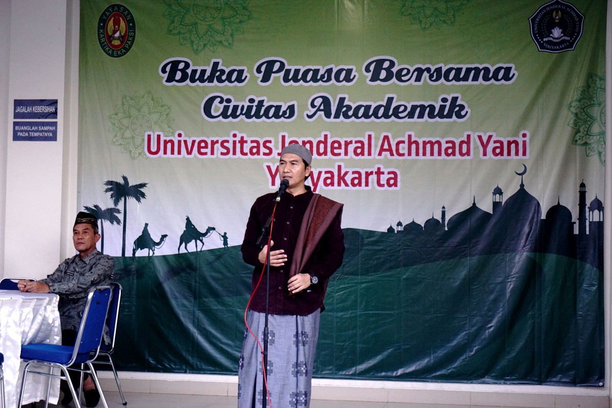SLEMAN – Universitas Jenderal Achmad Yani Yogyakarta menggelar kegiatan sosial dalam rangka menyemarakkan Bulan Suci Ramadan 1440 H dengan mengadakan kegiatan buka bersama dan pemberian santunan untuk anak yatim pada Jumat (27/05/2019). Kegiatan tersebut dilaksanakan di Kampus 1 Unjani Yogyakarta yang dihadiri oleh para Dosen, Karyawan, dan santri dari Pesantren Tahfidz Qur’an Yatim Nurani Insani Kec. Gamping, Kab. Sleman.