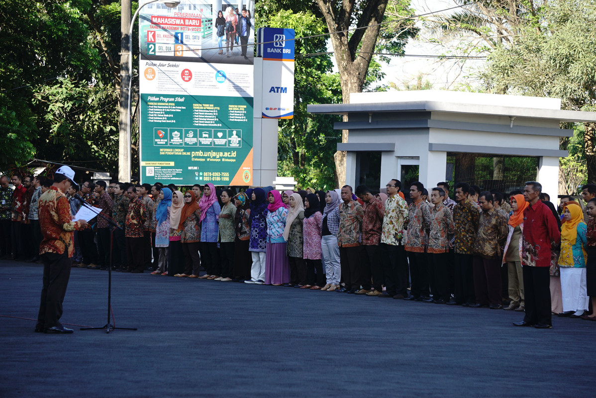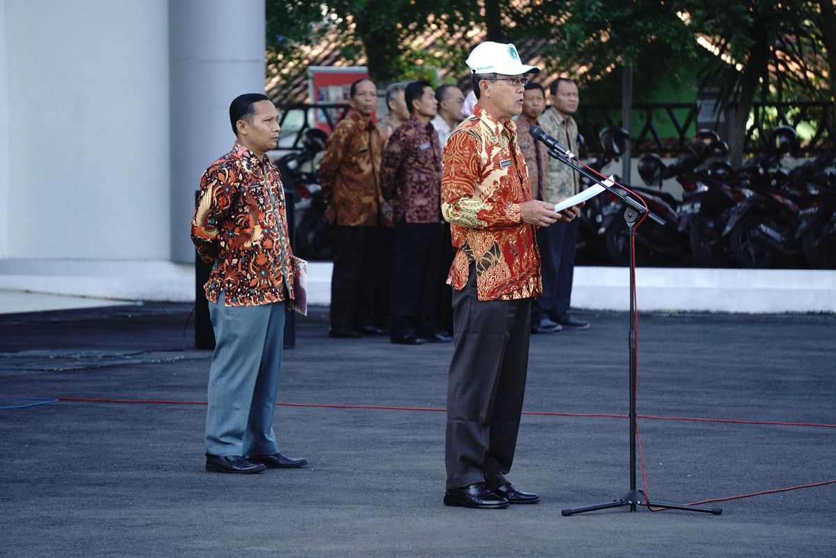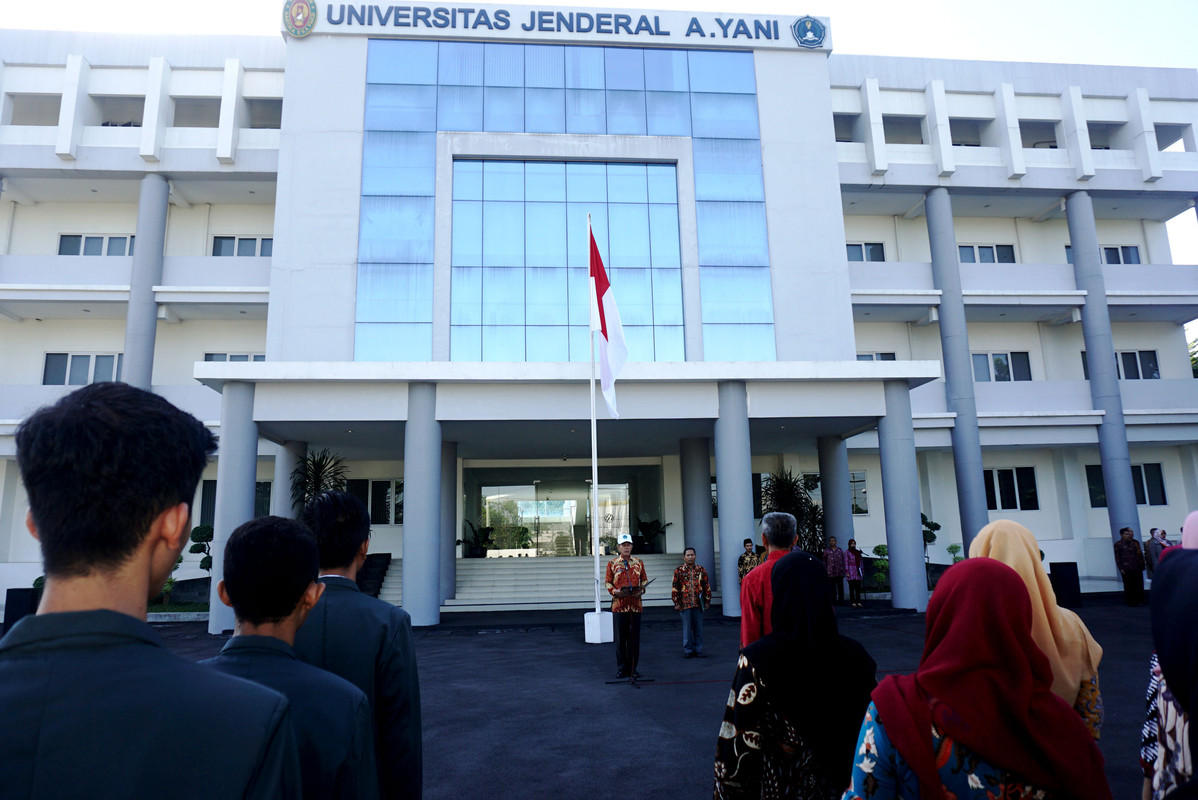 SLEMAN – Bertempat di depan Gedung Rektorat Kampus 1, sivitas akademika Universitas Jenderal Achmad Yani (Unjani) Yogyakarta menyelenggarakan Upacara Bendera dalam rangka memperingari Hari Pendidikan Nasional (Hardiknas) Tahun 2019, pada Kamis, (02/05/2019). Bertindak selaku Pembina Upacara, Rektor Unjani Yogyakarta Dr. Drs. Djoko Susilo, ST., MT., membacakan sambutan Menteri Riset, Teknologi, dan Pendidikan Tinggi (Menristekdikti) Prof. H. Mohamad Nasir, Ph.D., Ak. Dalam sambutannya, Menristekdikti menyampaikan bahwa dalam kehidupan suatu bangsa, pendidikan mempunyai peranan yang amat penting untuk menjamin perkembangan dan kelangsungan kehidupan. Oleh karenanya, sangat tegas konstitusi kita menyatakan bahwa salah satu tujuan pemerintah negara Indonesia yang dihantar oleh perjuangan pergerakan kemerdekaan Indonesia adalah memajukan kesejahteraan umum dan mencerdaskan kehidupan Bangsa.